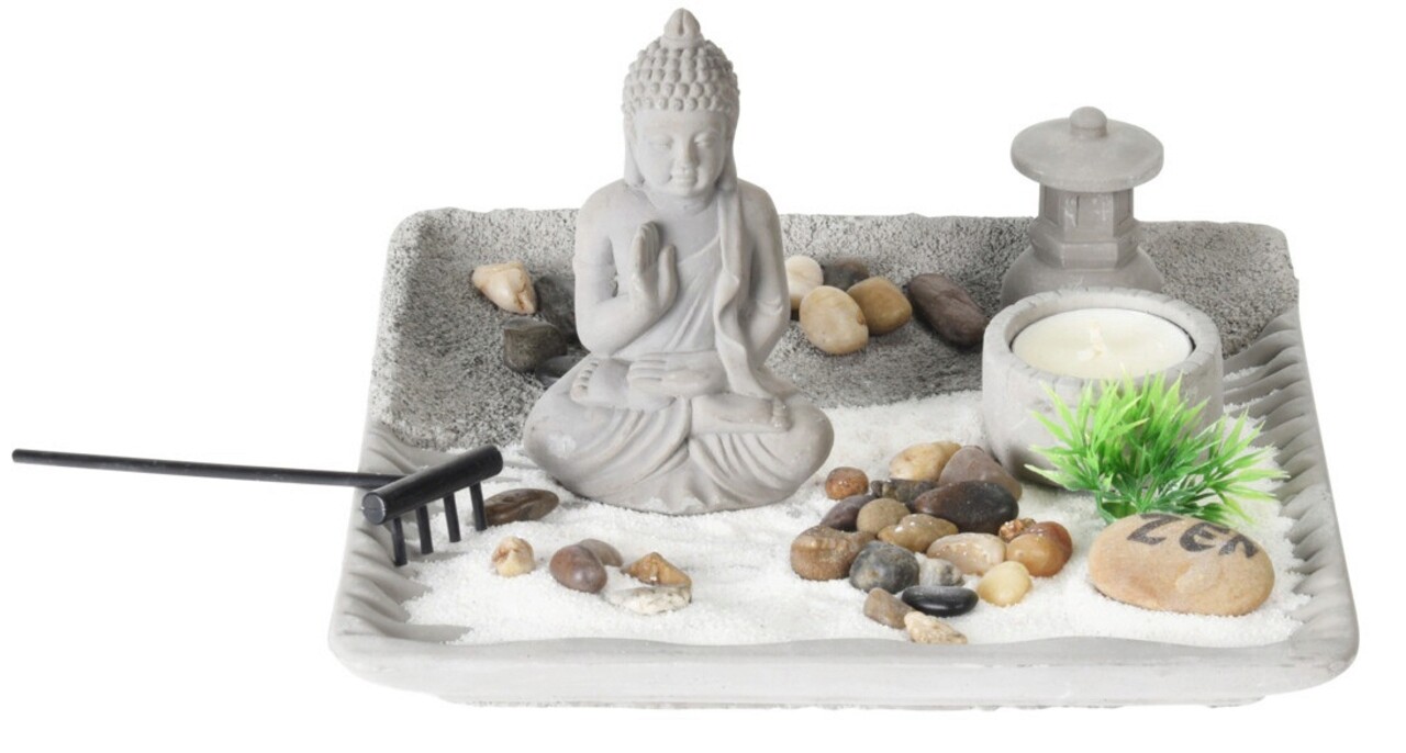 Suport pentru lumanare Buddha zen garden, 20.7x20.7x12.5 cm, ciment, gri