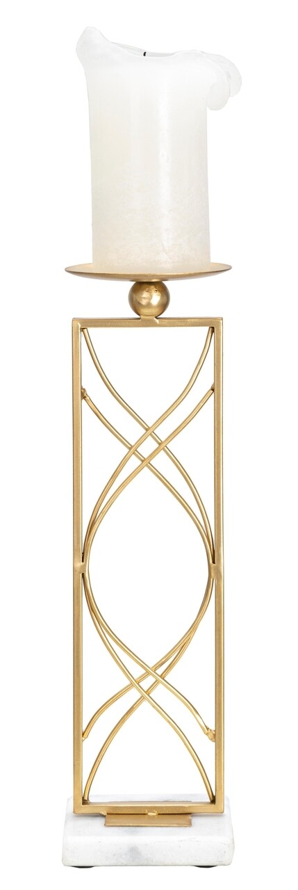 Suport pentru lumanare Exy, Mauro Ferretti, 10x10x35 cm, fier/marmura, auriu