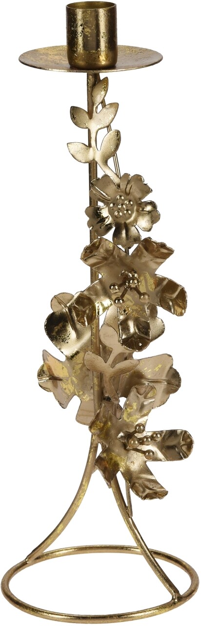 Suport pentru lumanare Flower, 10x10x27 cm, metal, auriu
