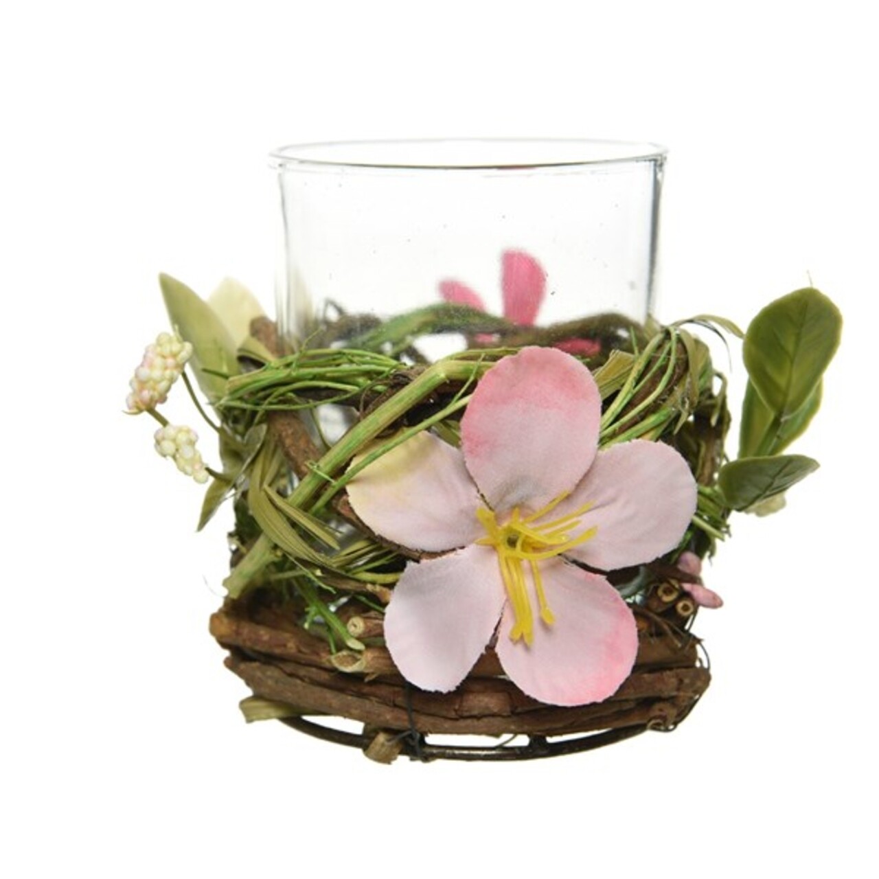 Suport pentru lumanare Flowers, Decoris, 9x9 cm, sticla, multicolor