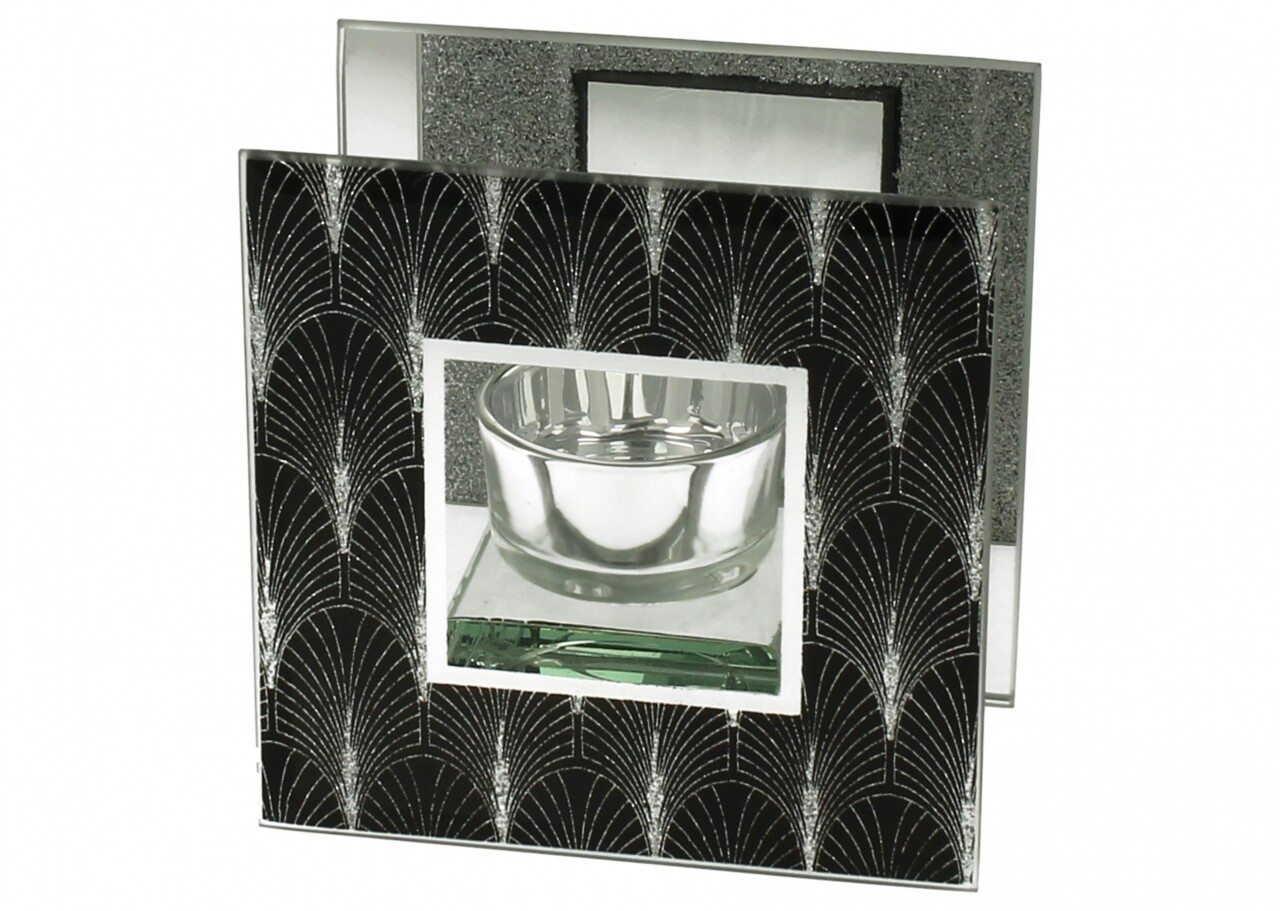 Suport pentru lumanare Foxi, Duo, 11 x 11 x 6 cm, sticla, negru