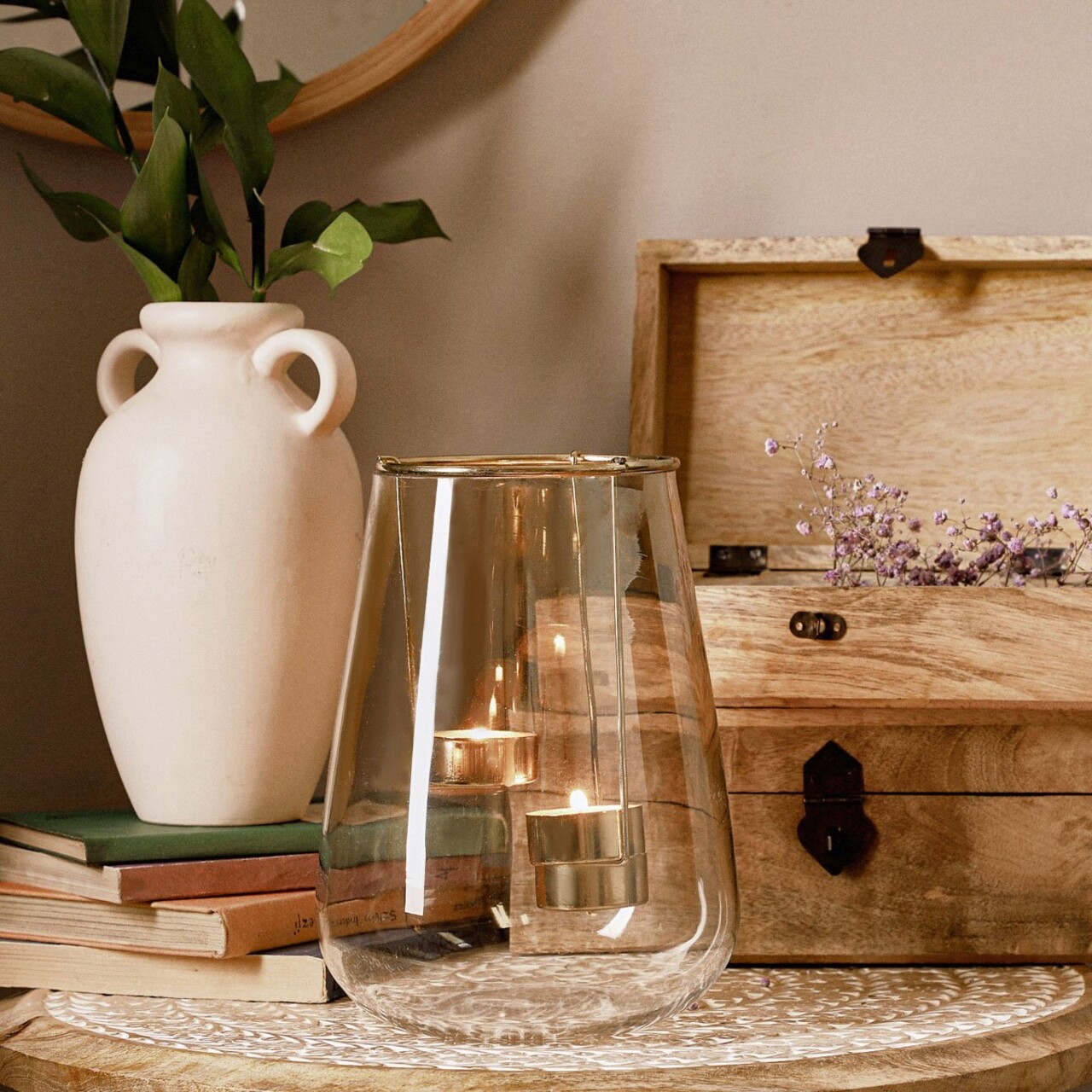 Suport pentru lumanare Galia, Homla, 15x20 cm, sticla/metal, transparent/auriu