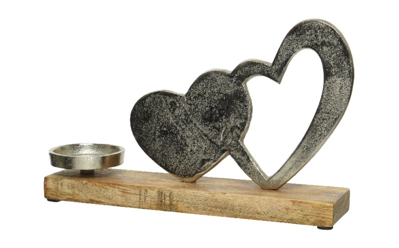 Suport pentru lumanare Heart, Decoris, 27x7x17 cm, aluminiu