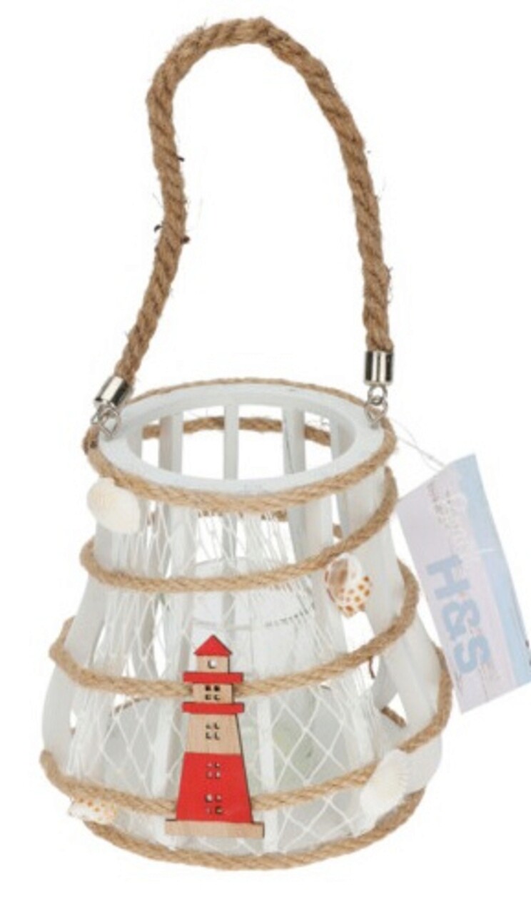 Suport pentru lumanare Lighthouse, 14x26 cm, lemn/sticla, alb
