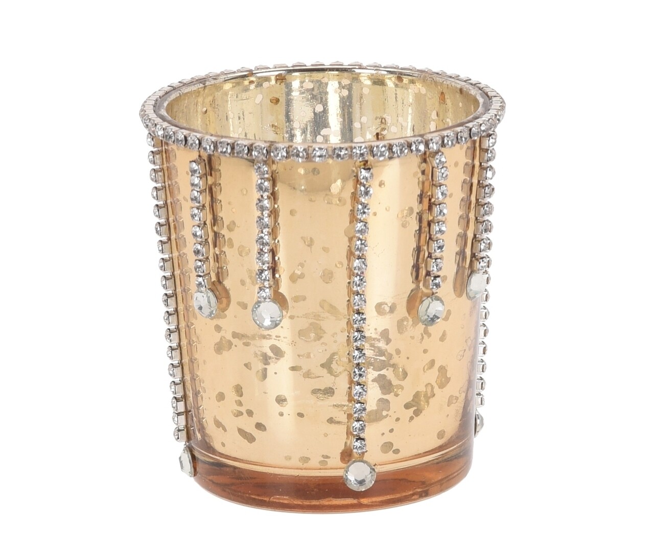 Suportul pentru lumanare Precious, decorat cu pietricele stralucitoare, va aduce un strop de extravaganta in caminul tau si va contribui la crearea unei atmosfere romantice.