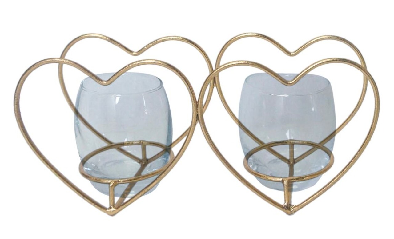 Suport pentru lumanari, Heart, Mauro Ferretti, 2 lumanari, 27.5x12.5 cm, fier/sticla
