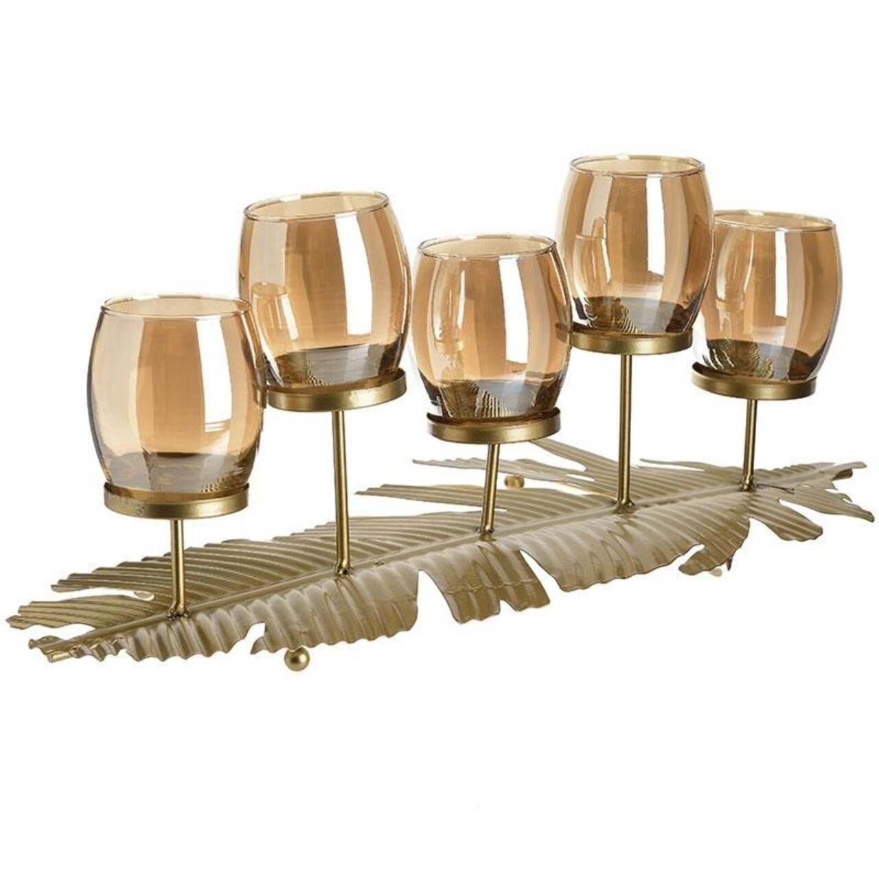 Suport pentru lumanari Leaf, InArt, 5 lumanari, 55 x 19 cm, fier/sticla, auriu
