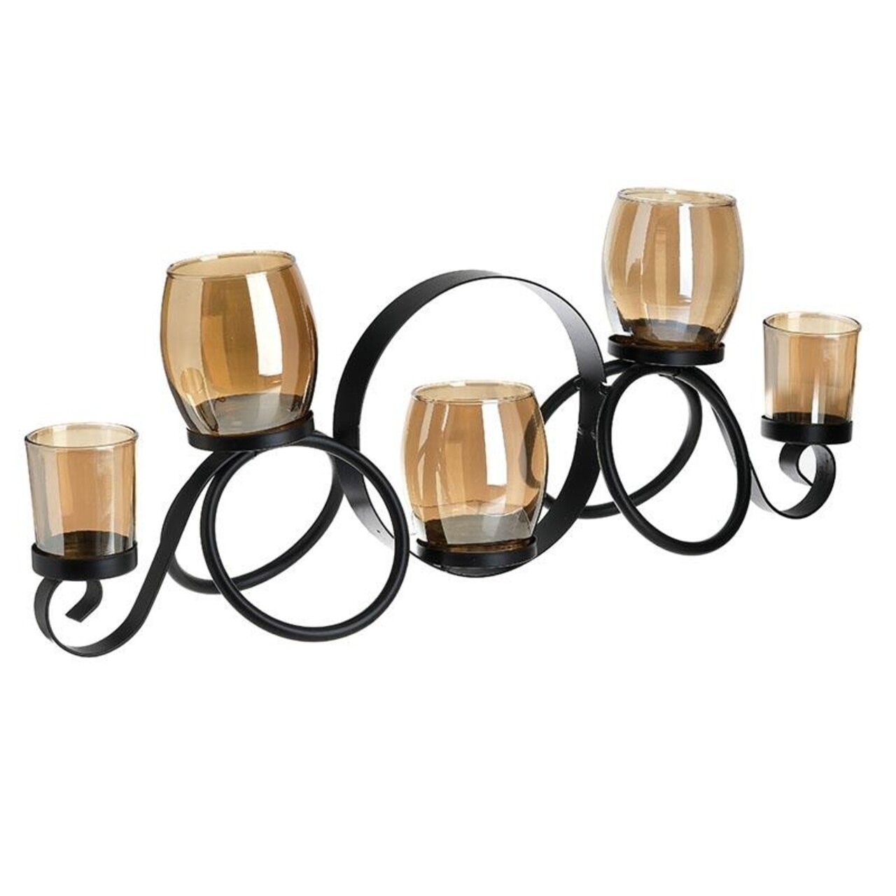 Suport pentru lumanari Minimal, InArt, 5 lumanari, 52 x 19 cm, fier/sticla, negru