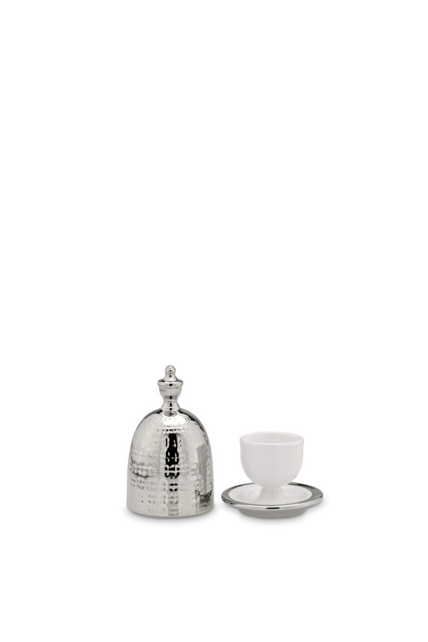 Suport pentru ou cu capac, Hermann Bauer, 8.6x14 cm, argintiu