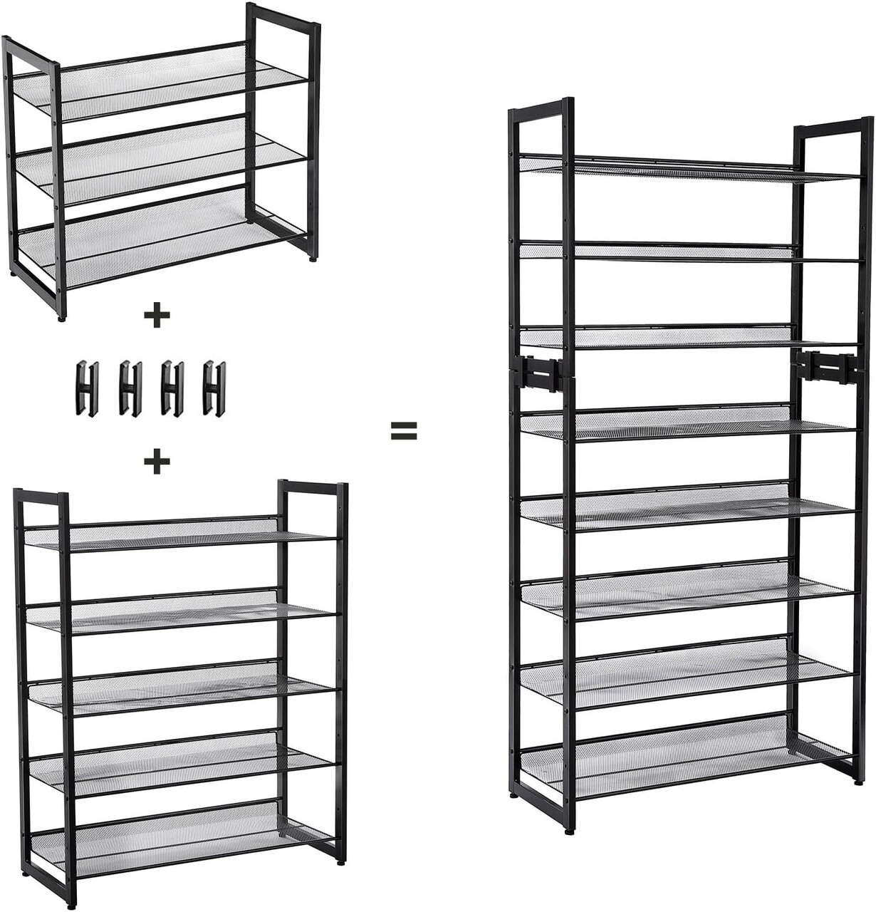 Suport pentru pantofi cu 5 niveluri, Songmics, 20 perechi pantofi, 74x30.7x104 cm, otel, negru