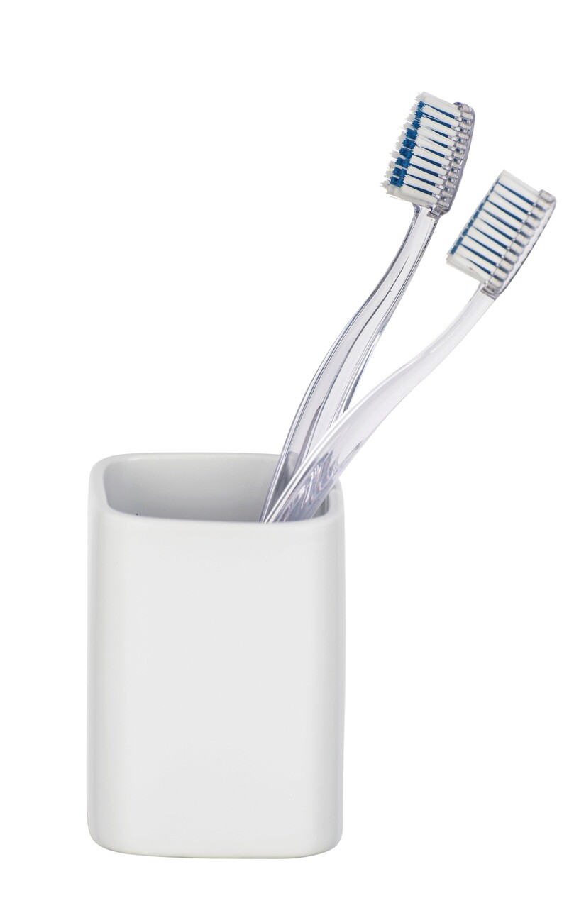 Suport pentru periute si pasta de dinti Hexa, Wenko, 6.5x6.5x9 cm, ceramica, alb
