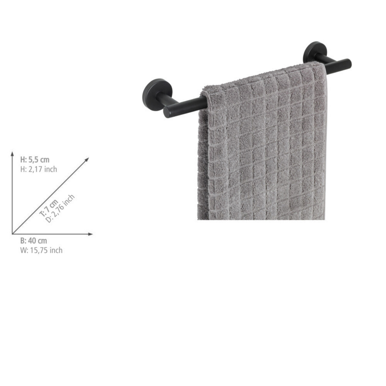 Suport pentru prosoape Bosio, Wenko, 40x7x5.5 cm, inox, negru