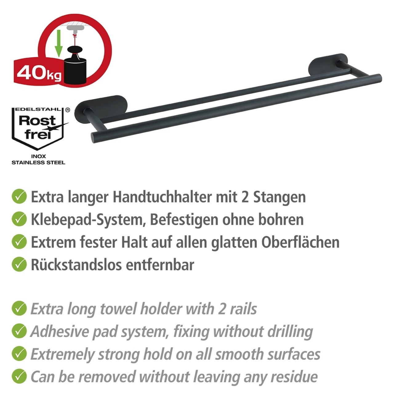 Suport pentru prosoape Orea Black, Wenko, 60x12x4.5 cm, inox, negru