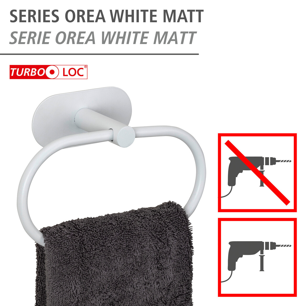 Suport pentru prosoape Orea, Wenko, 20.5x7.5x12.5 cm, inox, alb