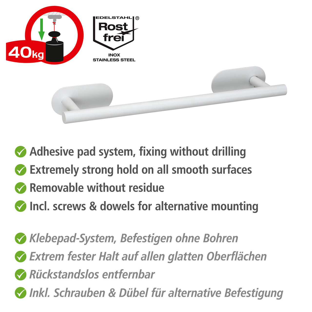 Suport pentru prosoape Orea, Wenko, 40x7x4.5 cm, inox, alb