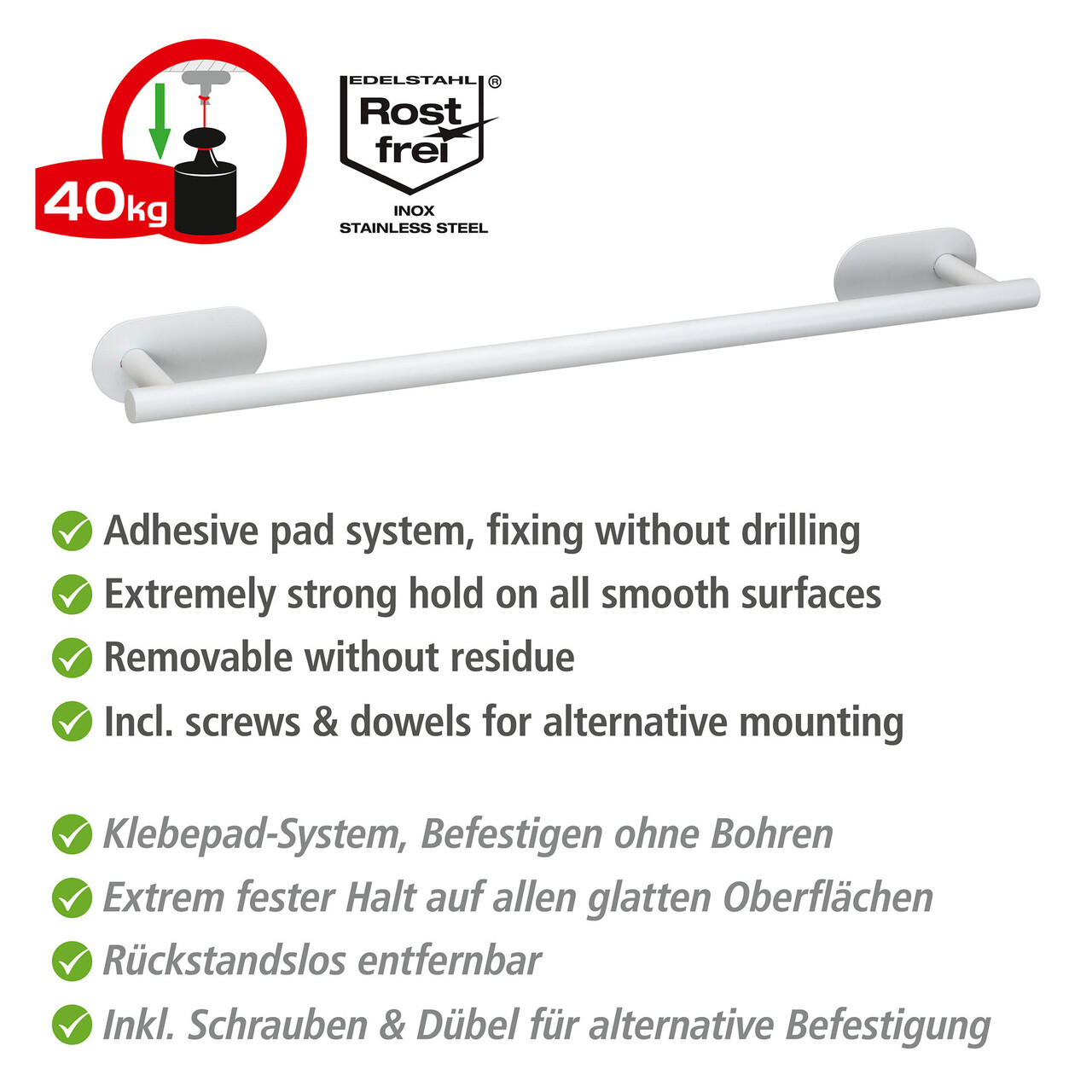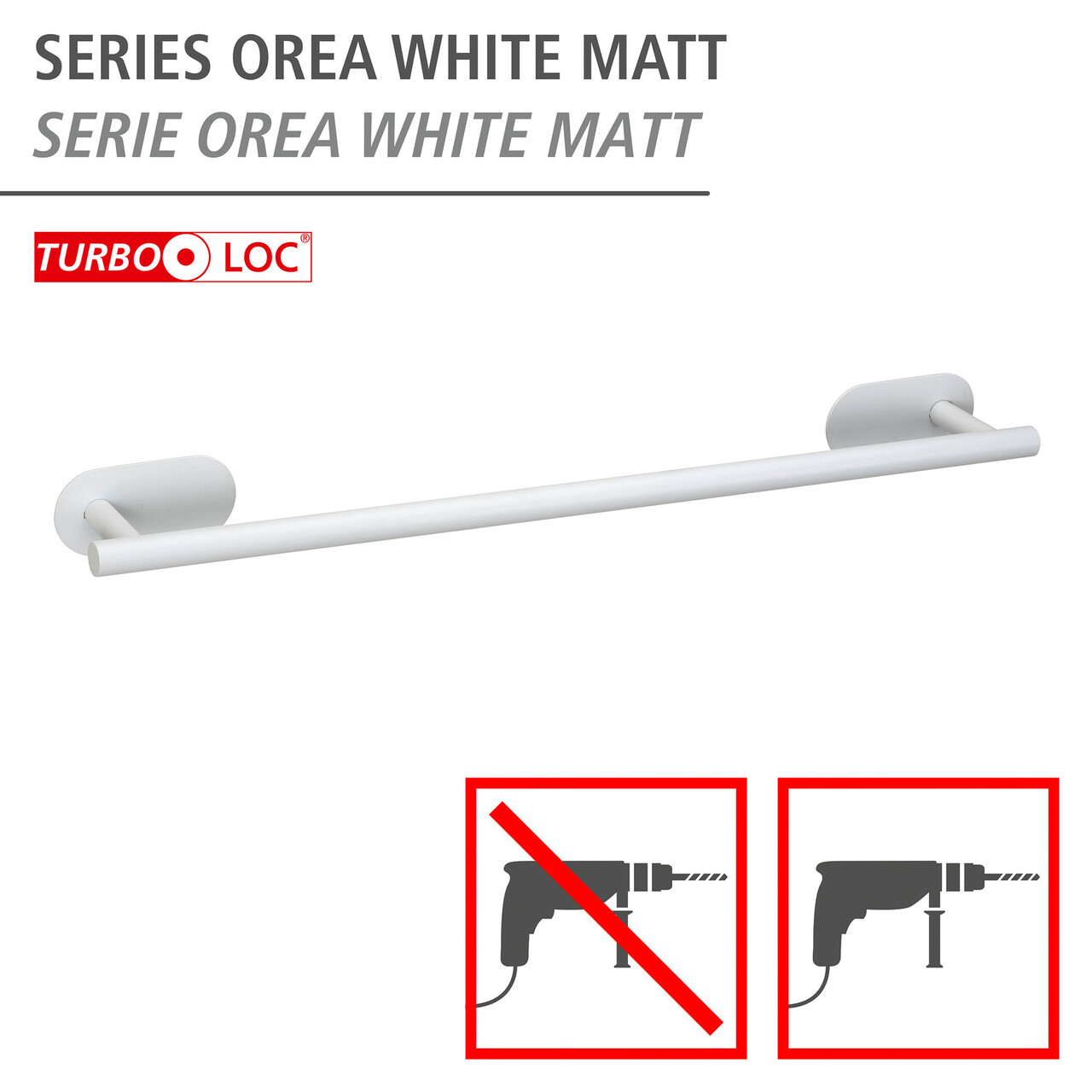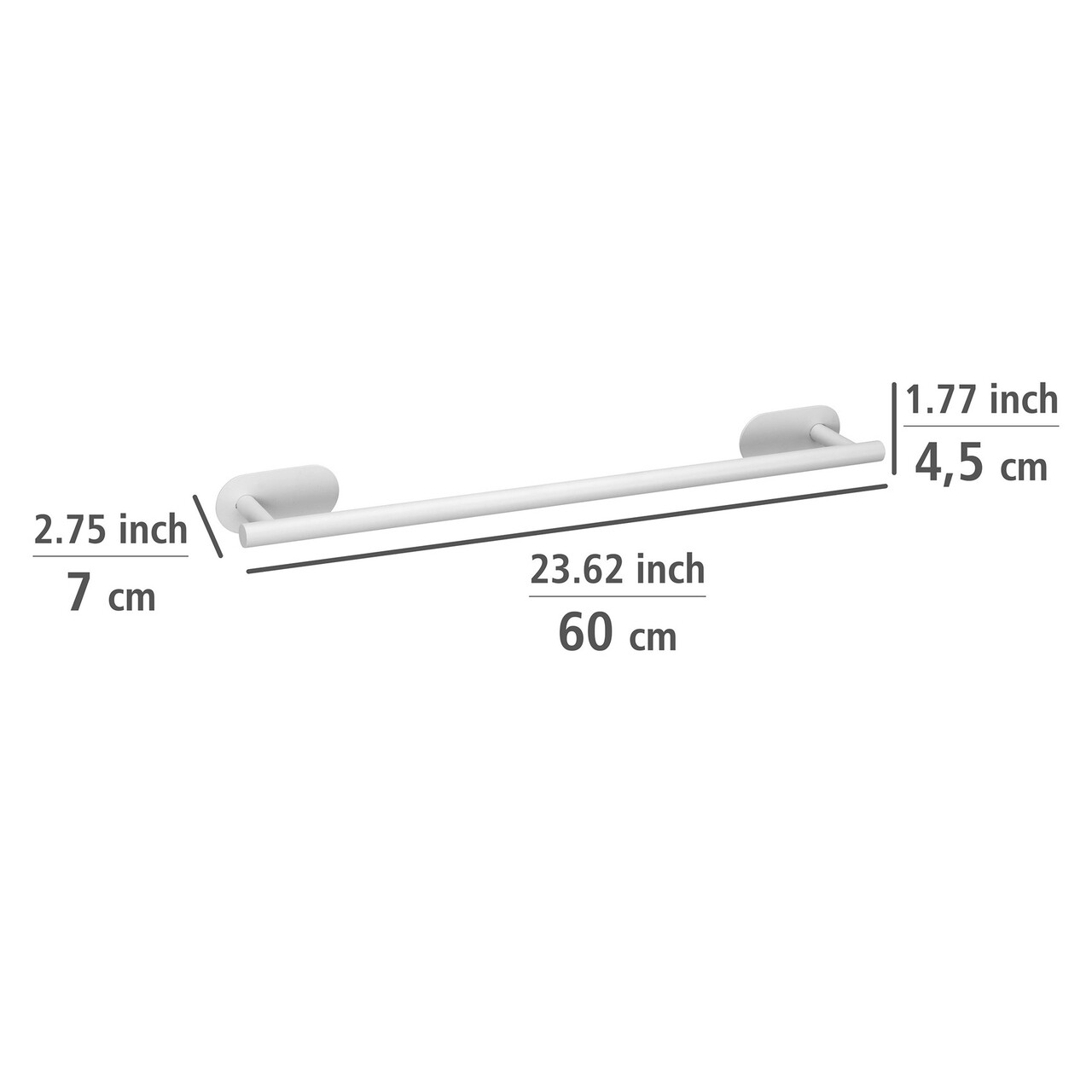 Suport pentru prosoape Orea, Wenko, 60x7x4.5 cm, inox, alb