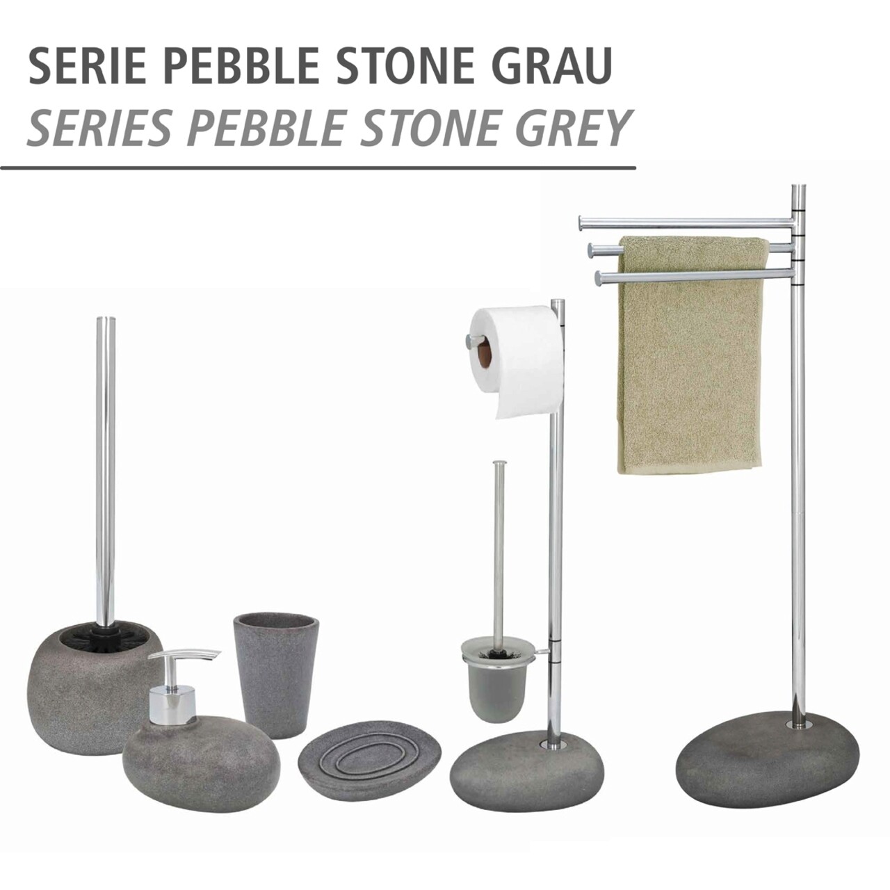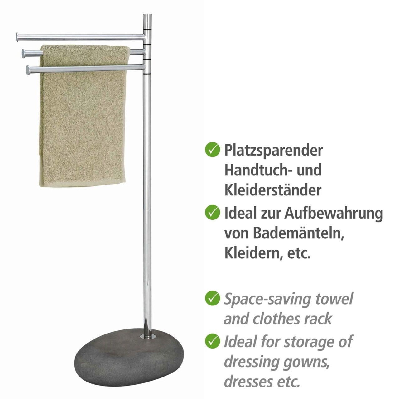 Suport pentru prosoape Pebble Stone, Wenko, 38x23x84 cm, metal/otel/polirasina, gri/argintiu