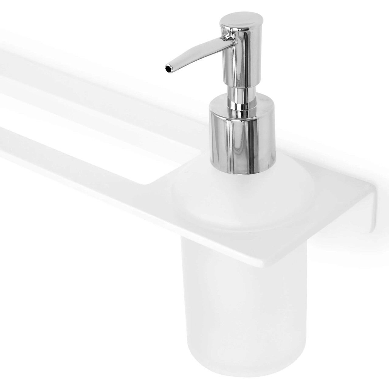 Suport pentru prosoape si dozator sapun Vicini, 33x9x3 cm, inox/sticla, alb mat
