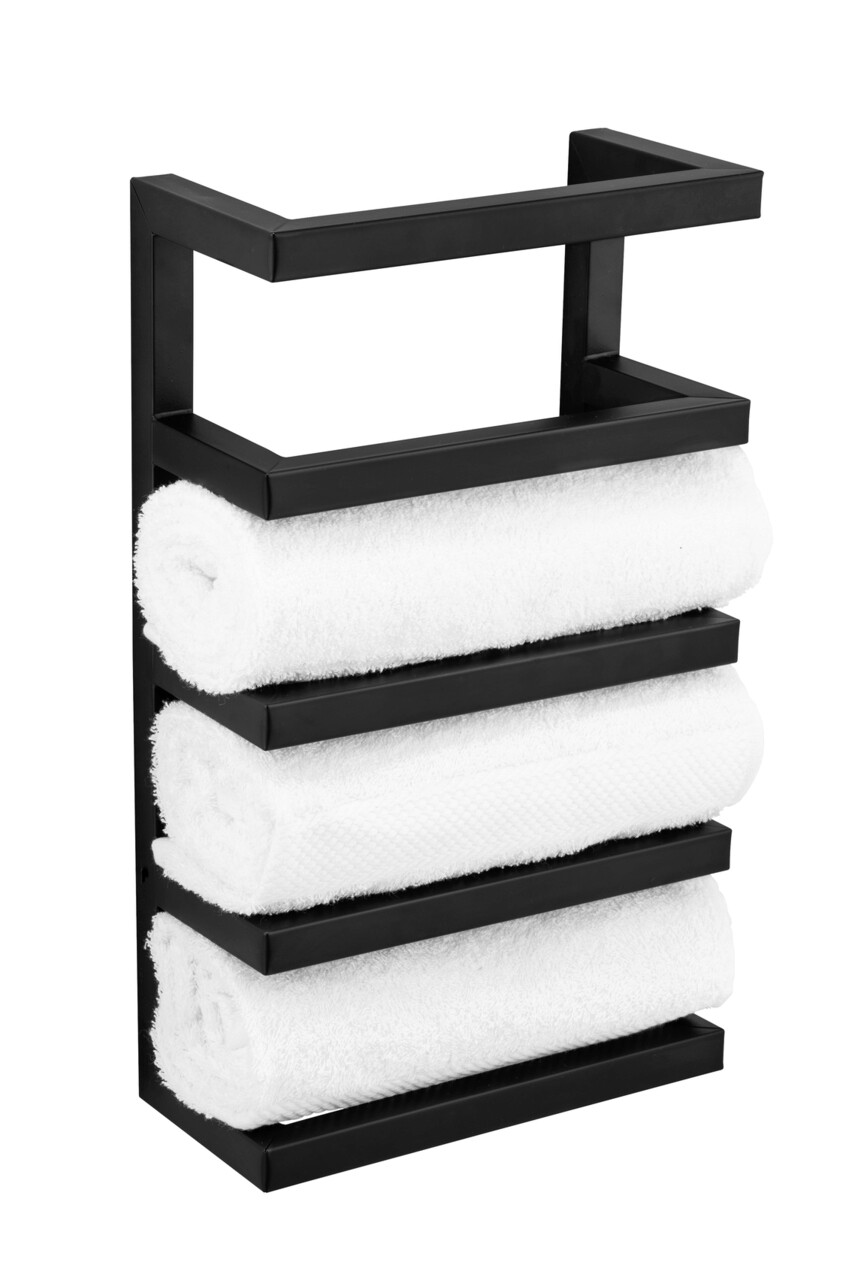 Suport pentru prosoape, Wenko, Fondiro, 24 x 12 x 42 cm, inox, negru