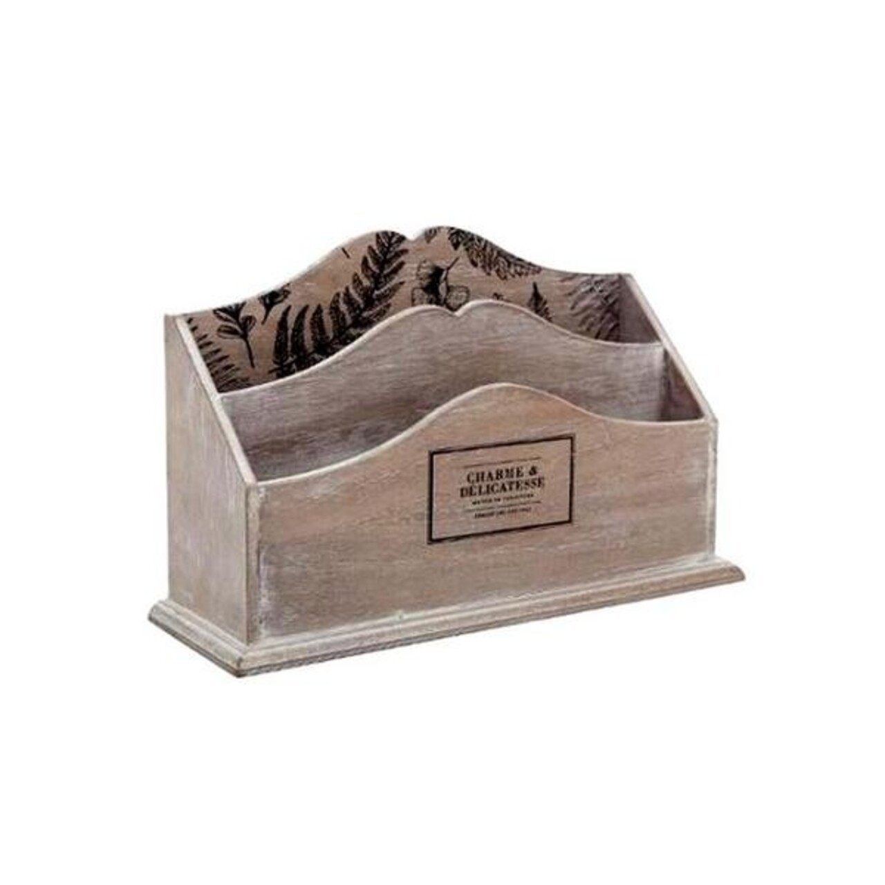 Cu suportul din MDF, practic si elegant iti poti organiza facturile si corespondenta. Are 2 compartimente si este decorat cu motive vegetale.