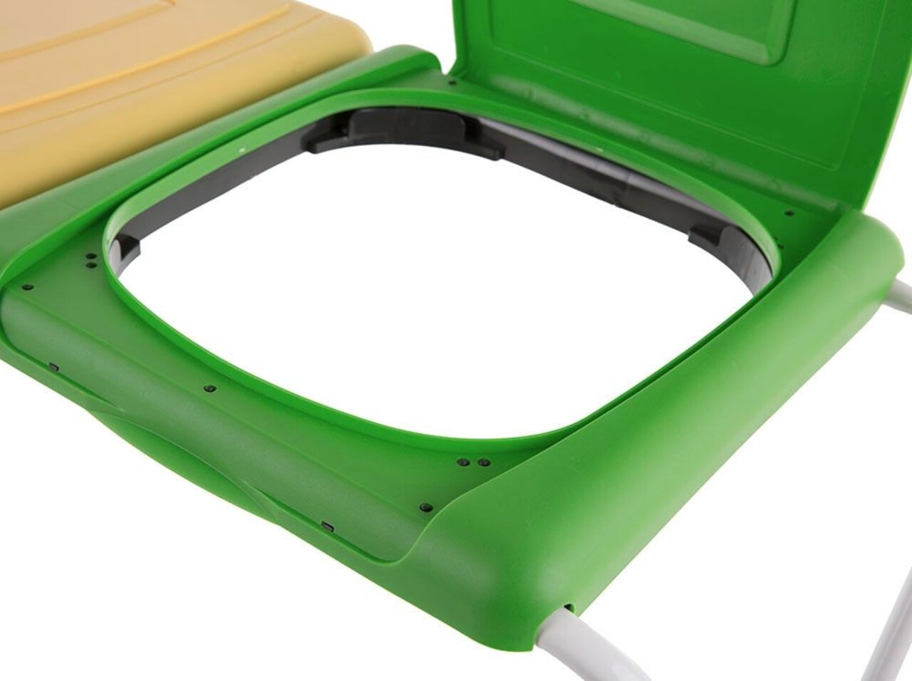 Stand cu doua camere 37x83x82cm, cu capac de culoare galbena si verde, dedicat pungilor de 120l, constructie durabila din tevi de otel, asamblare usoara si rapida a sacului.