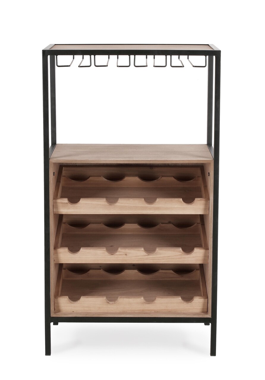 Suport pentru sticle de vin Isaac, Bizzotto, 51x30x91 cm, MDF/otel, negru