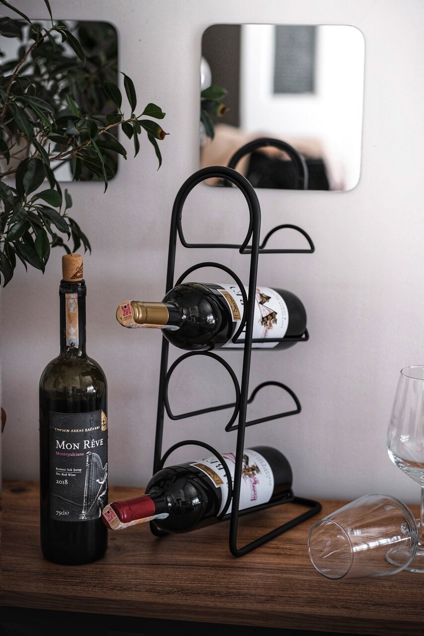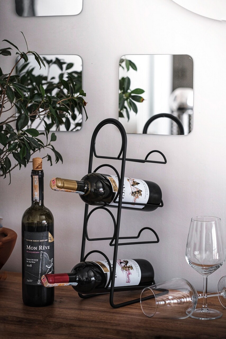 Suport pentru sticle de vin, Puqa Design, Hope, 21x12x43 cm, Metal, Negru