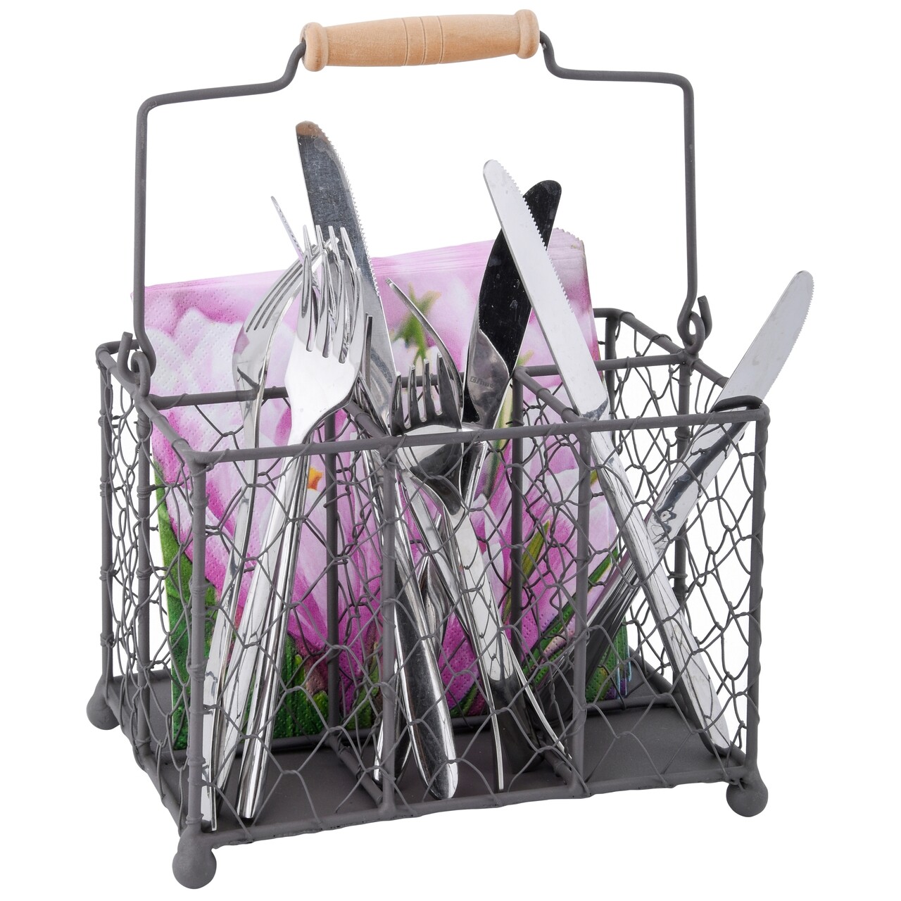 Suport pentru tacamuri si servetele, Esschert, 14.8 x 21.2 x 16.3 cm, fier/lemn de plop