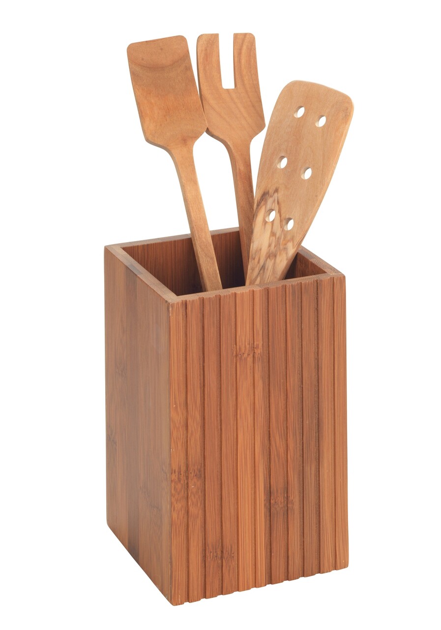 Suport pentru ustensile Mera, Wenko, 11x11x18 cm, bambus/polipropilena, maro