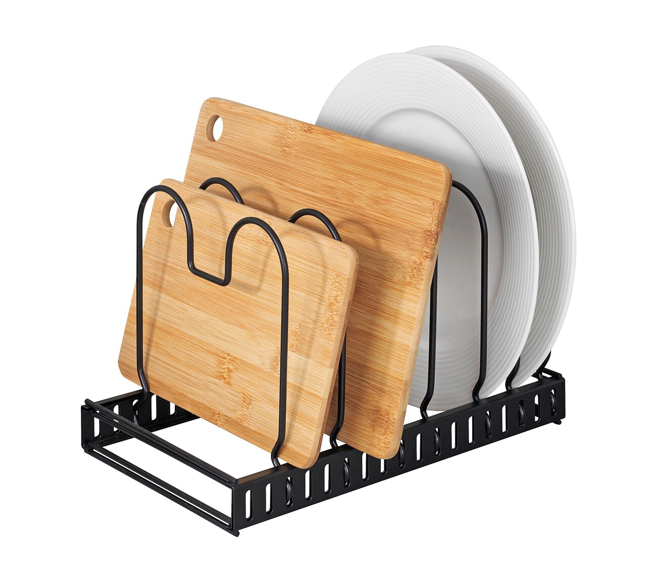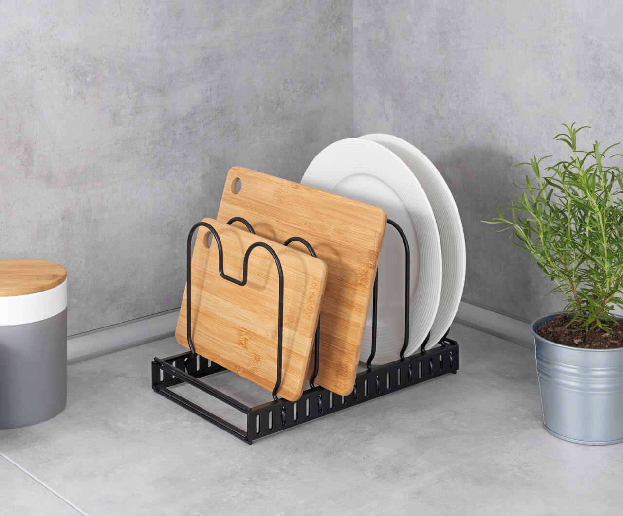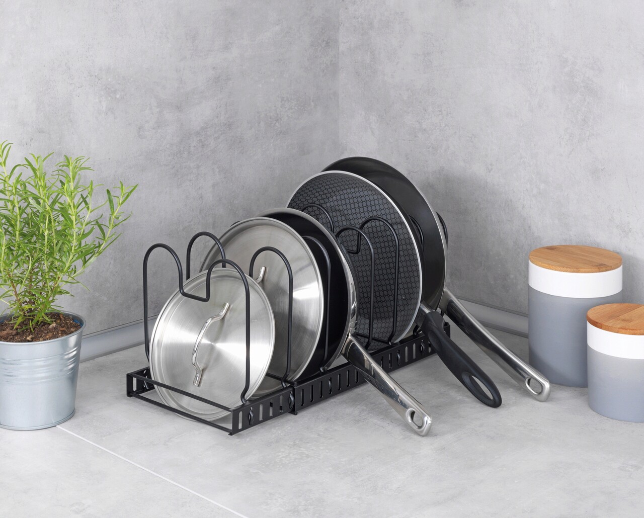 Suport pentur tigai si capace, Wenko, Extendable, 30-57 x 18 x 18 cm, metal, negru
