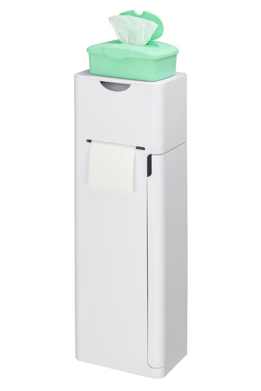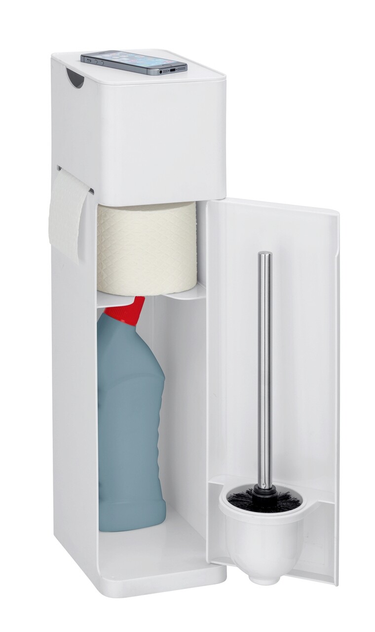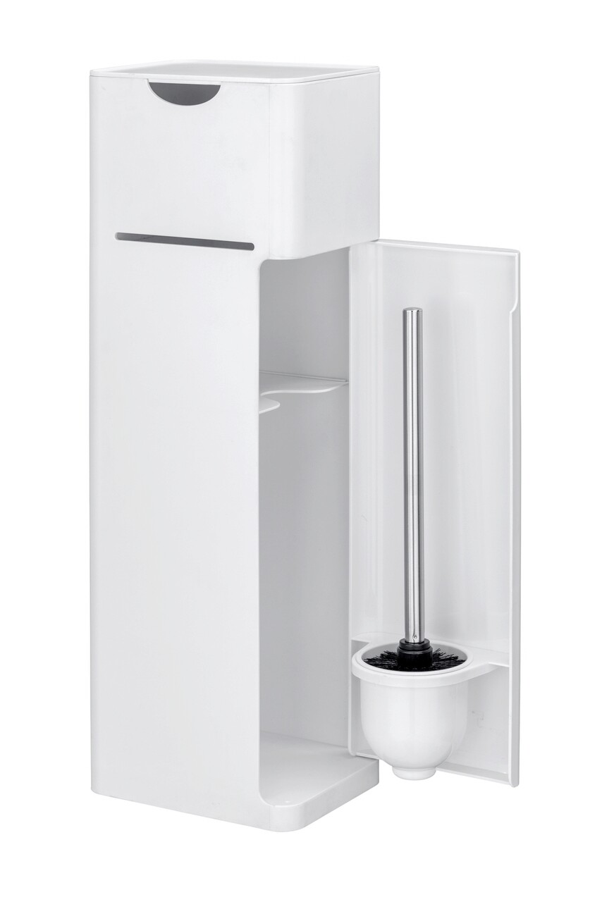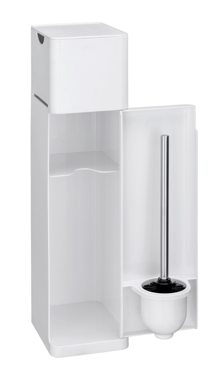 Suport perie pentru toaleta cu suport hartie igienica integrat, Wenko, 6 in 1, 20 x 15 x 58.5 cm, plastic, alb