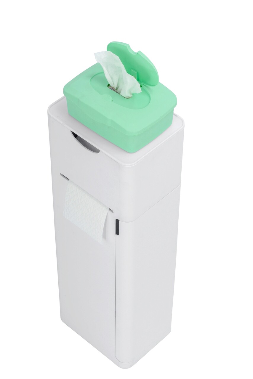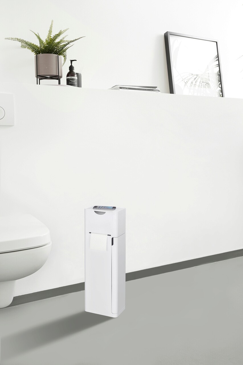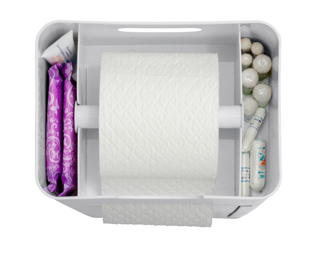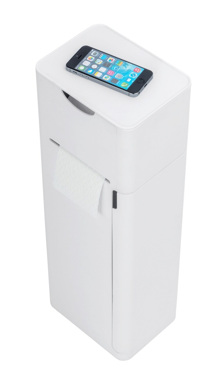 Suport perie pentru toaleta cu suport hartie igienica integrat, Wenko, 6 in 1, 20 x 15 x 58.5 cm, plastic, alb