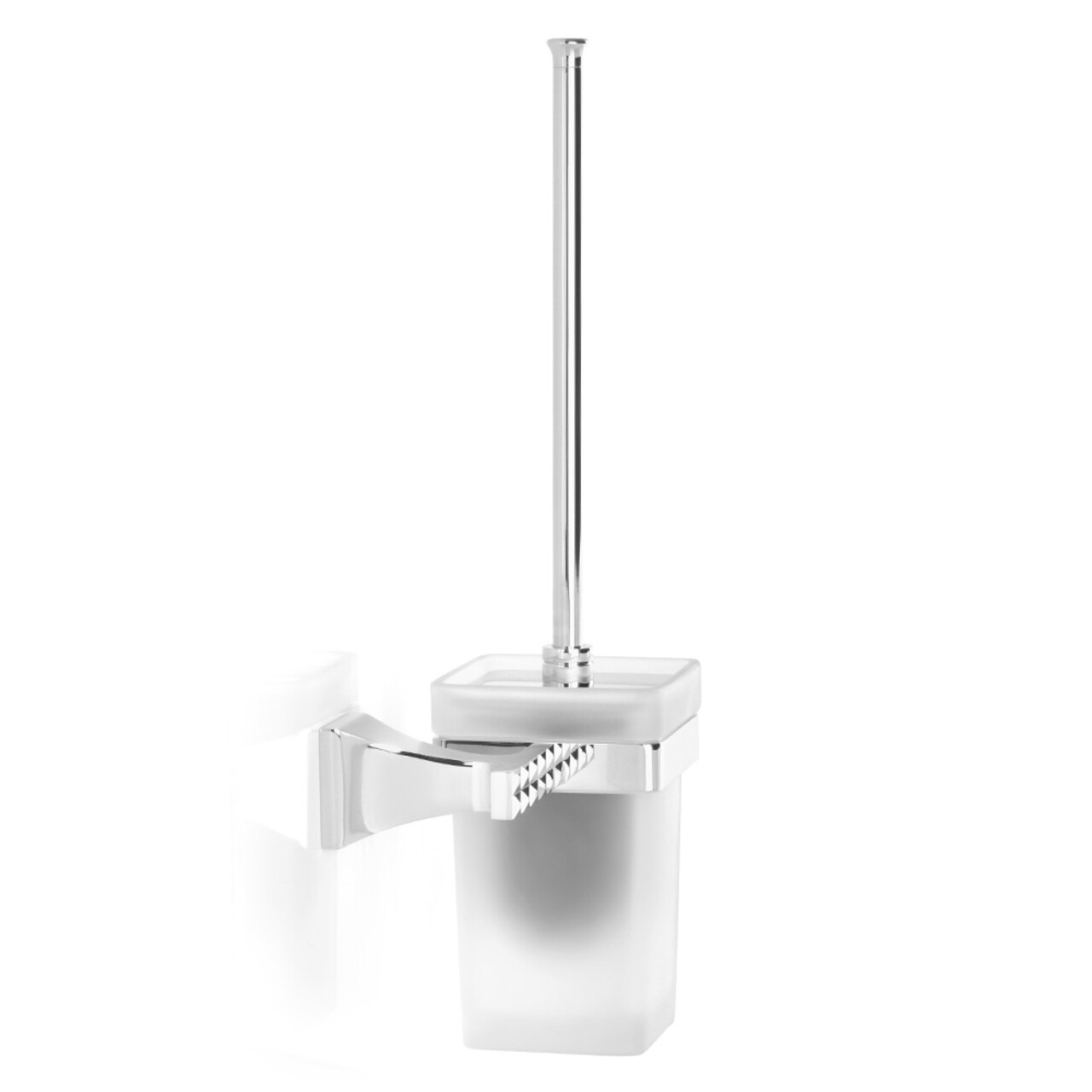 Suport perie pentru toaleta Parthenon, 16.3x11.7x36 cm, alama/sticla, argintiu