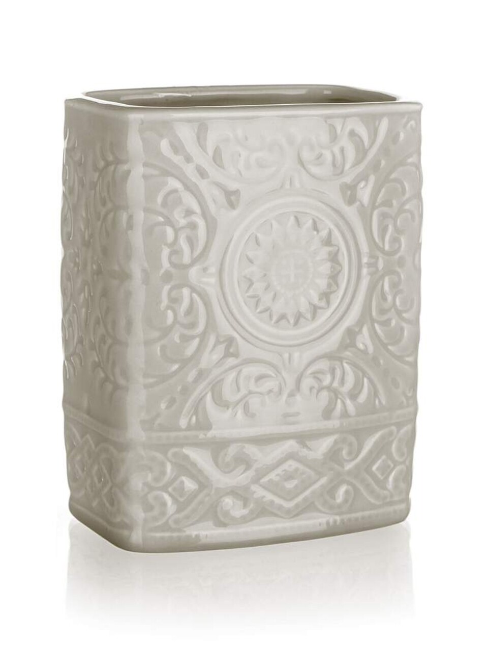 Suport periute si pasta de dinti, Brilanz, 9x6x12 cm, ceramica, gri/bej