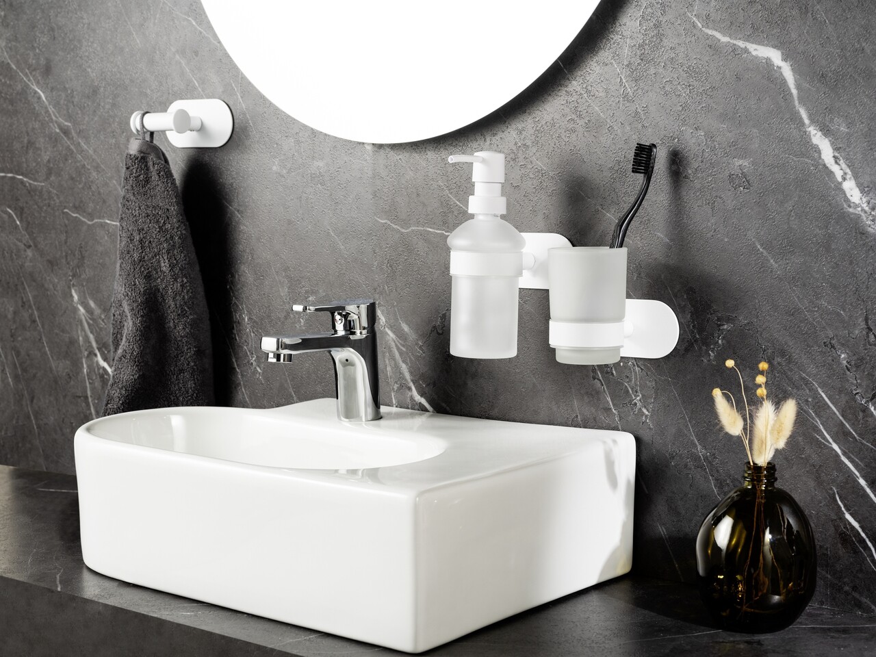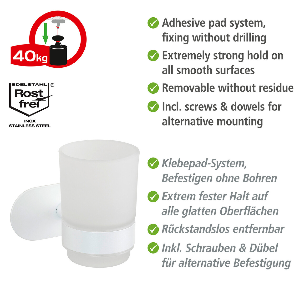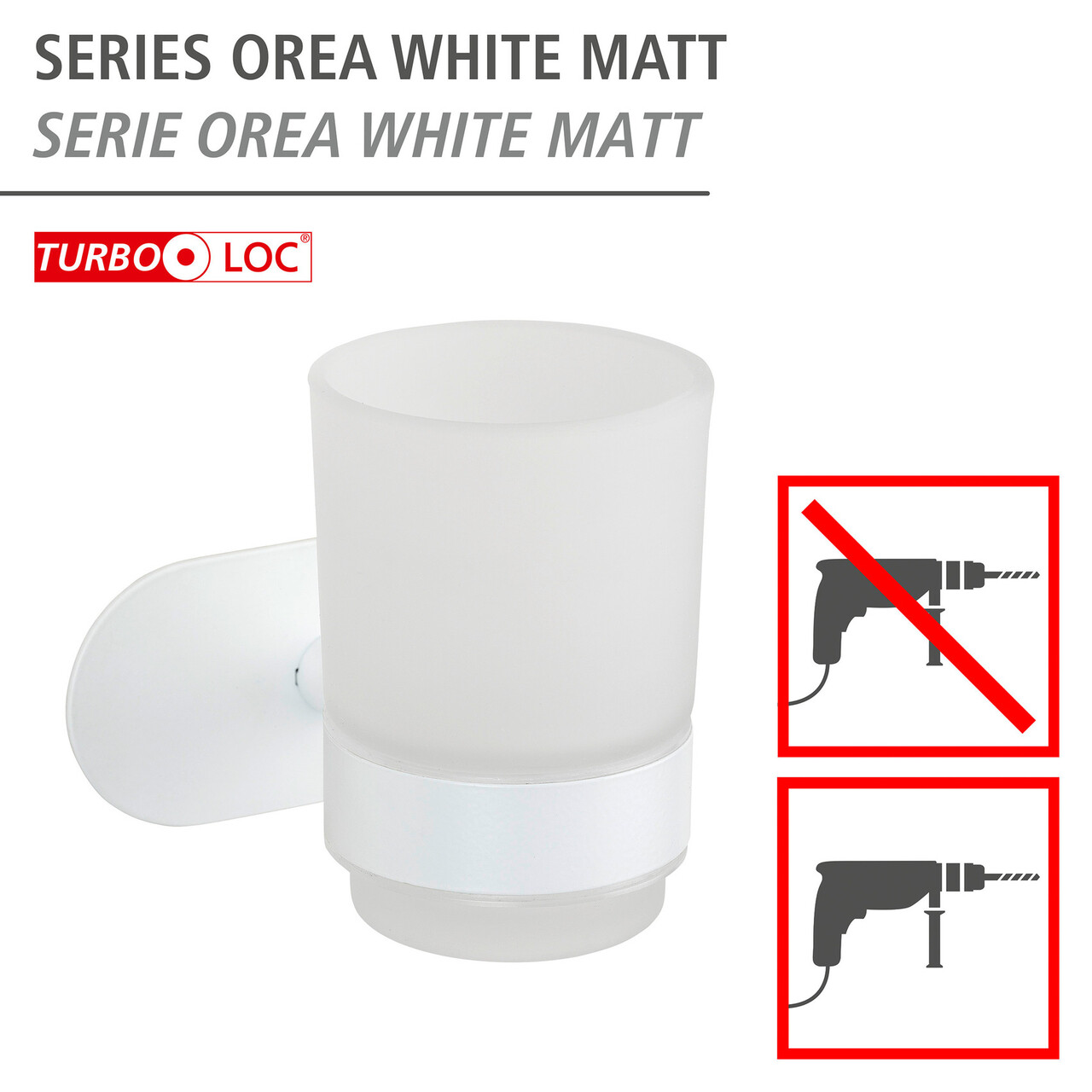 Suport periute si pasta de dinti Orea, Wenko, 10x10x9.5 cm, inox/sticla, alb