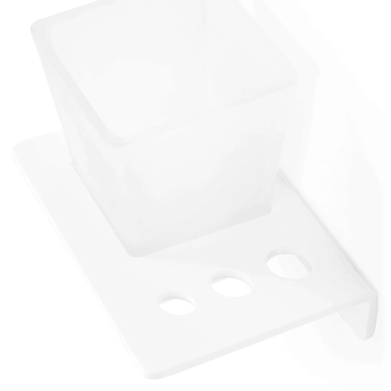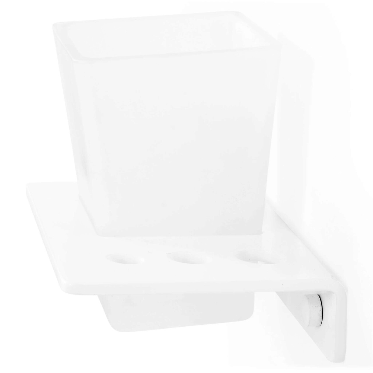 Suport periute si pasta de dinti Vicini, 12.9x9x10 cm, inox/sticla, alb mat
