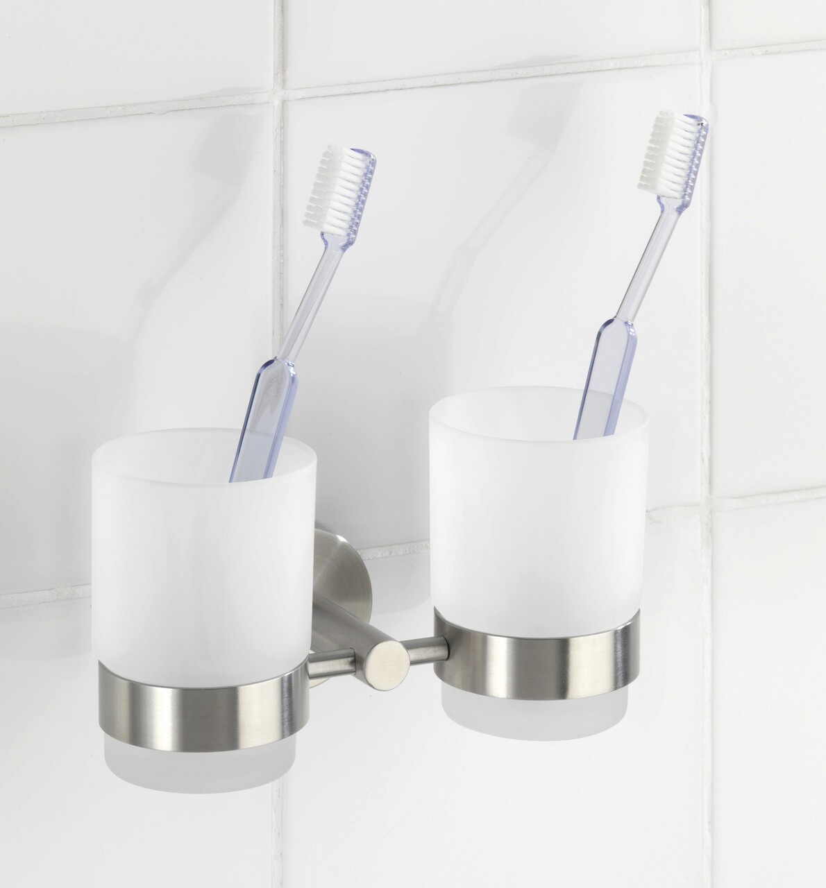 Suport periute si pasta de dinti, Wenko, Bosio, 17.5 x 9 x 9.5 cm, inox/sticla, gri