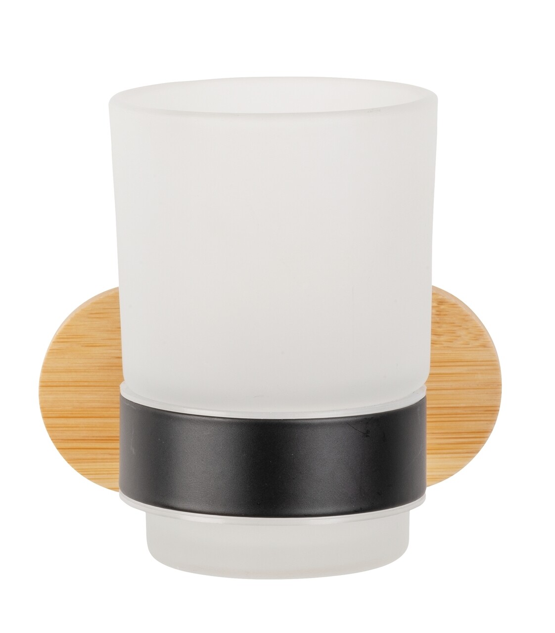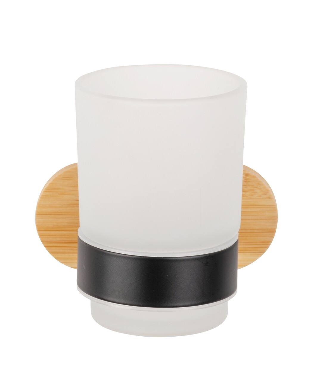 Suport periute si paste de dinti, Wenko, Turbo-Loc Orea, 10 x 9.5 x 10 cm, bambus/inox, natur/negru