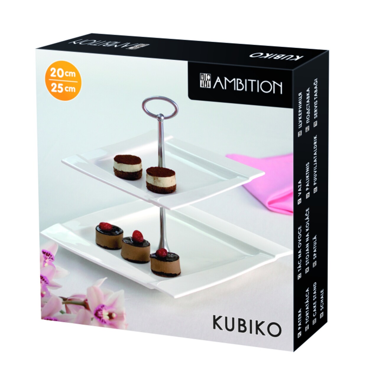 Suport prajituri 2 etaje Kubiko, Ambition, portelan, 25 x 25 x 23 cm, alb