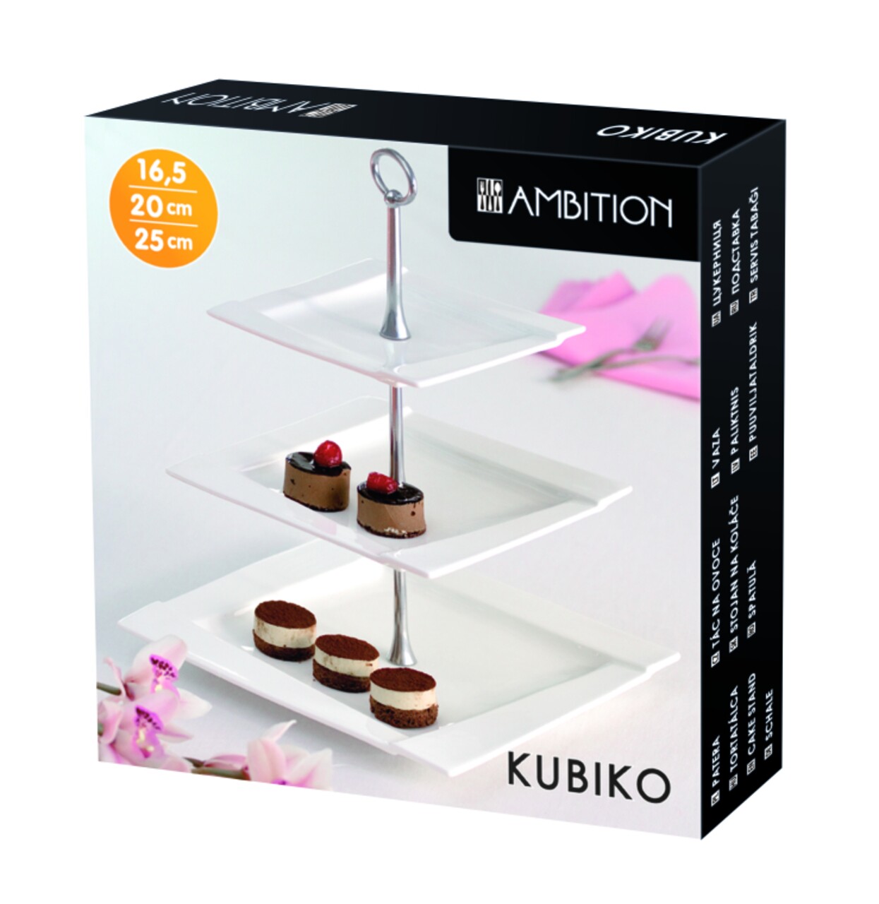 Suport prajituri 3 etaje Kubiko, Ambition, portelan, 25 x 25 x 35 cm, alb