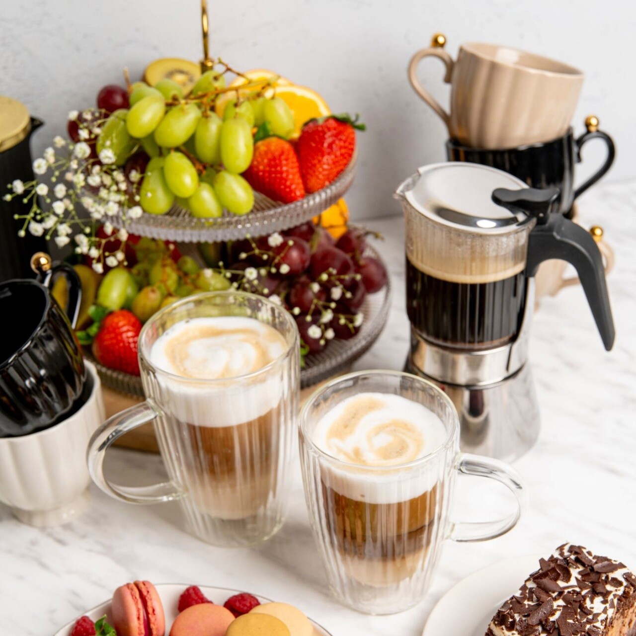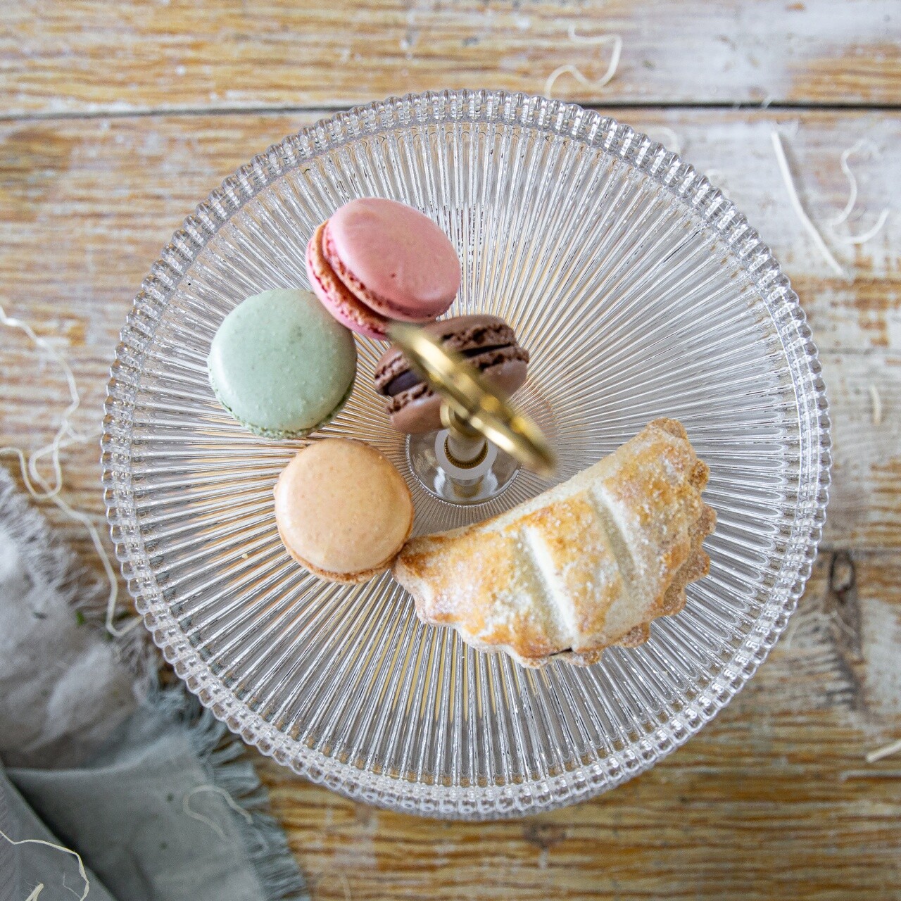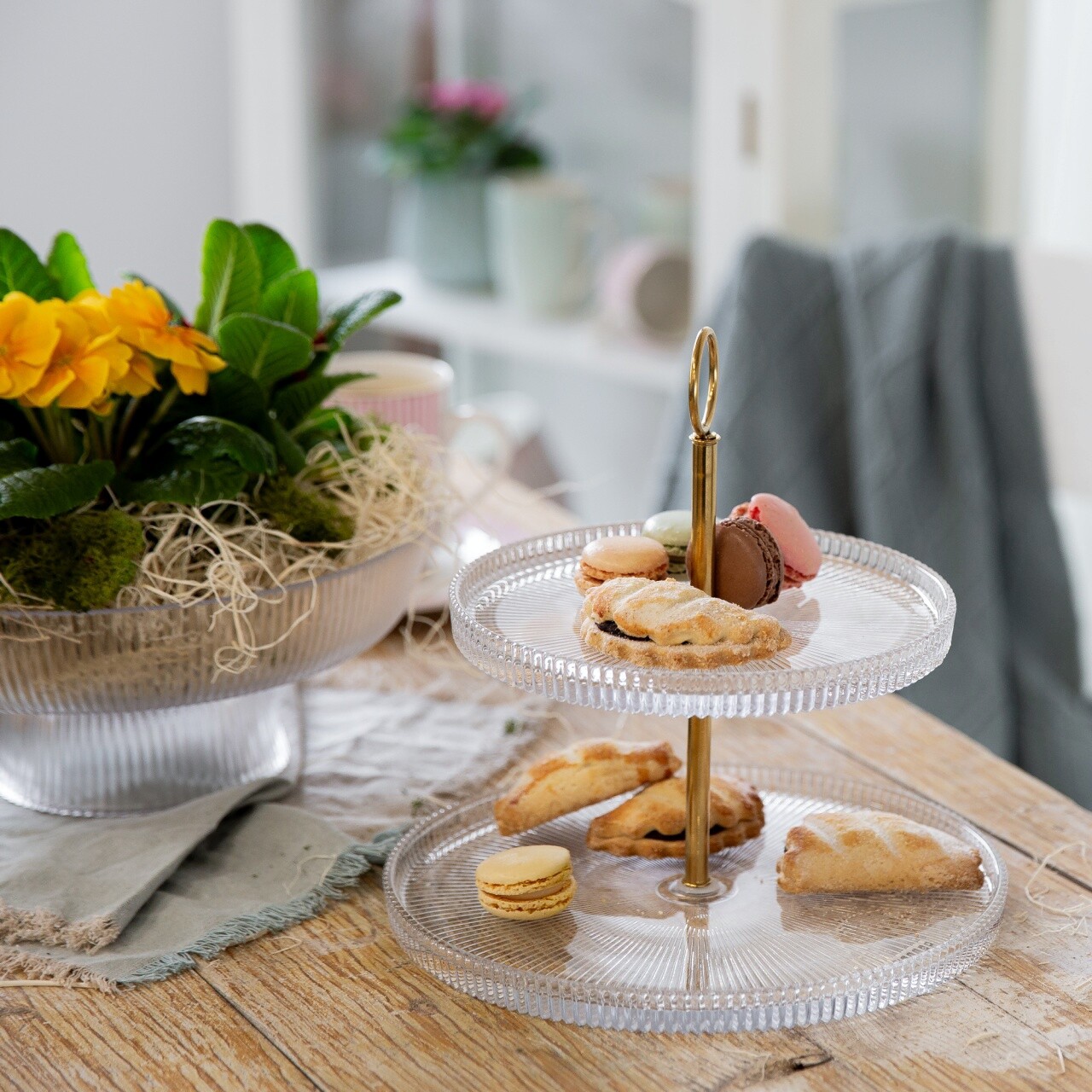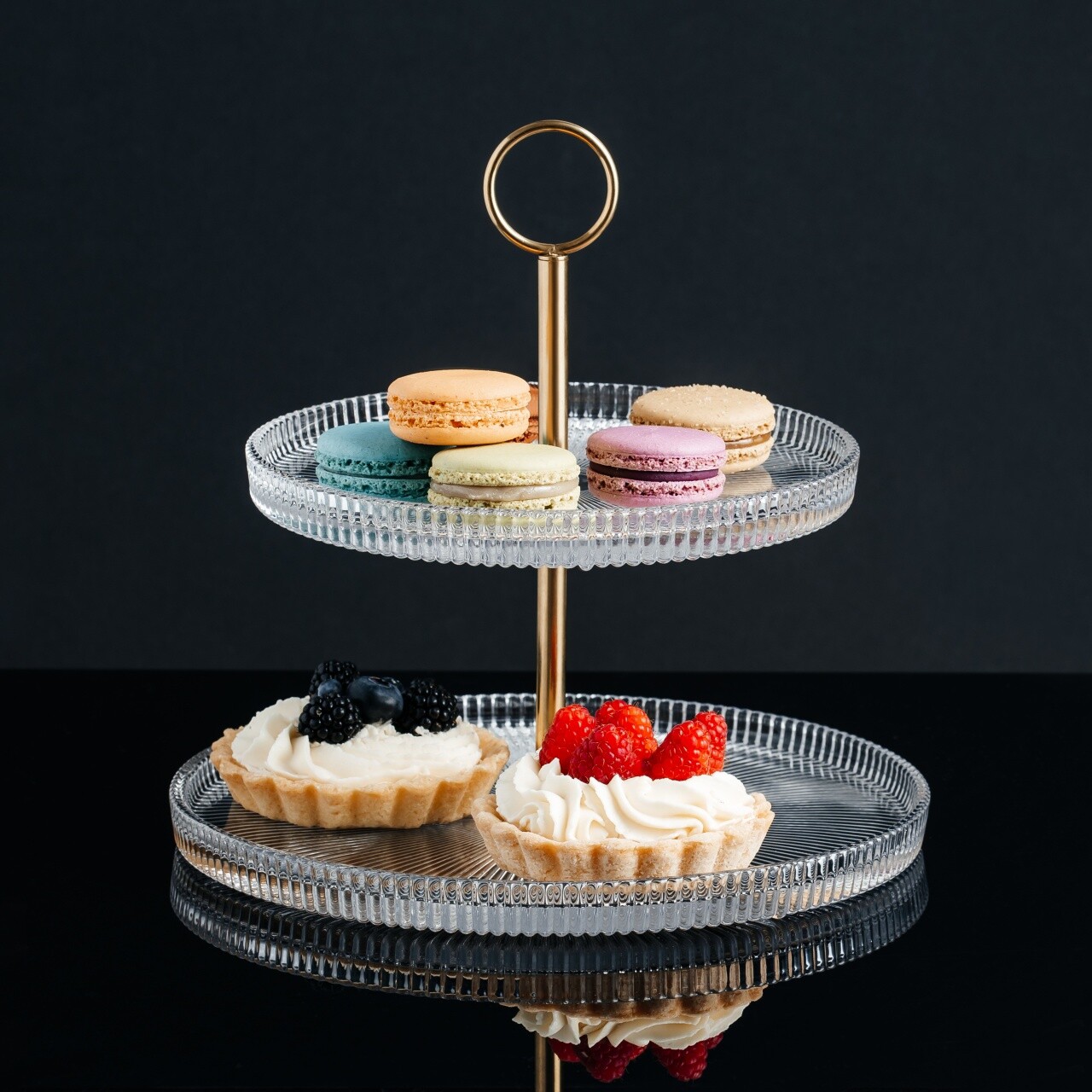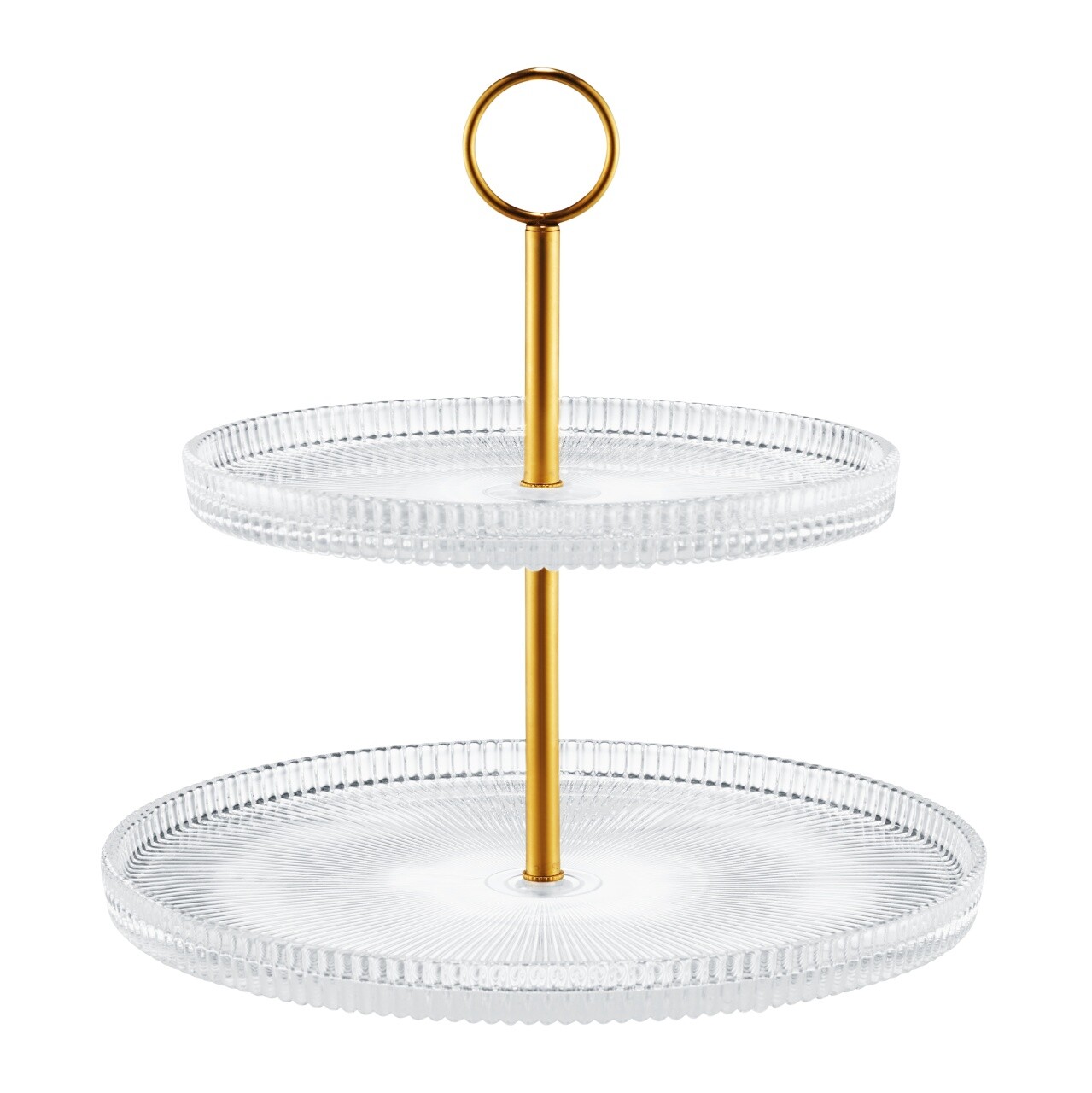 Suport prajituri cu 2 nivele Curly, Ambition, 18 cm/26 cm, otel/sticla, auriu/transparent