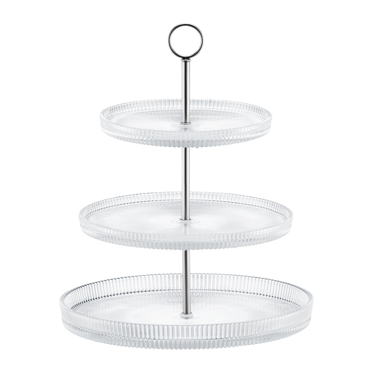 Suport prajituri cu 3 etaje Curly, Ambition, 19 cm/24 cm/29 cm, otel/sticla, argintiu/transparent