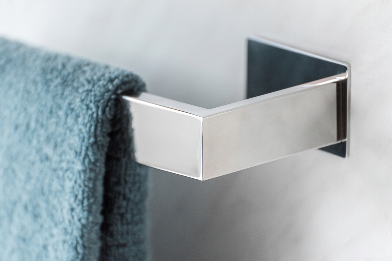 Suport prosoape de baie, Wenko, Turbo-Loc, Genova Shine, 61 x 4.4 x 7.6 cm, inox, gri