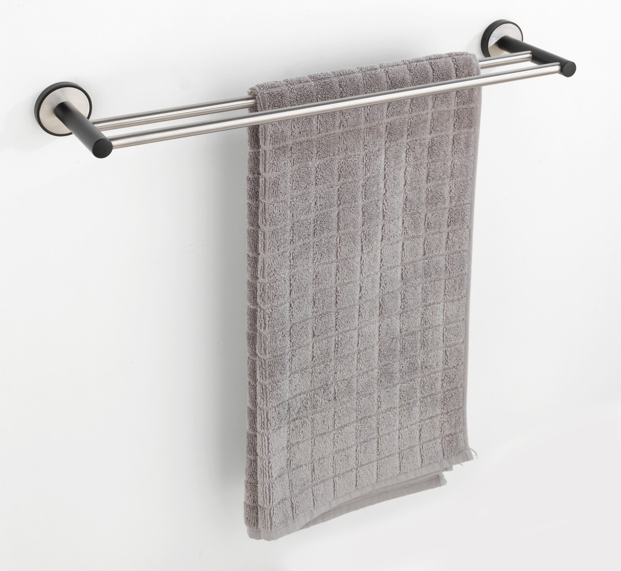 Suport prosoape de baie, Wenko, UV-Loc, Udine, 61 x 5 x 11 cm, inox, gri/negru