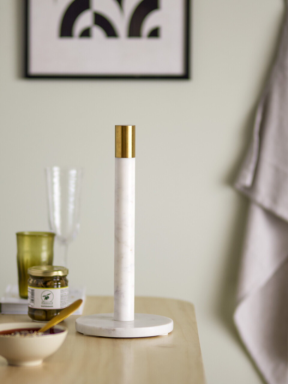 Suport rola servetele, Bloomingville, Emira, 15x32 cm, marmura/alama, alb