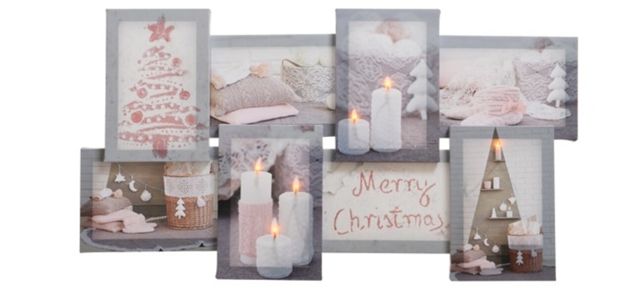 Tablou canvas cu 6 LED-uri Merry Christmas, Lumineo, multicolor