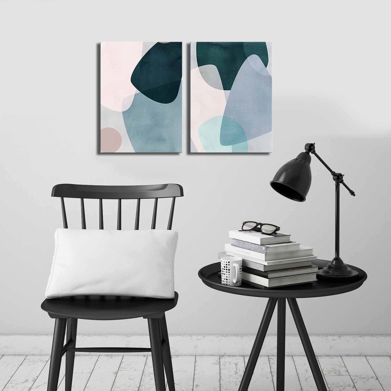 Tablou decorativ, 2P3040CIZC-02, 100% SUEDE CANVAS / Size: 28 x 38 cm (2 Pieces) / Total Size: 58 x 38 cm / Frame: 100% Wooden (Thickness: 2,8 cm), Multicolor