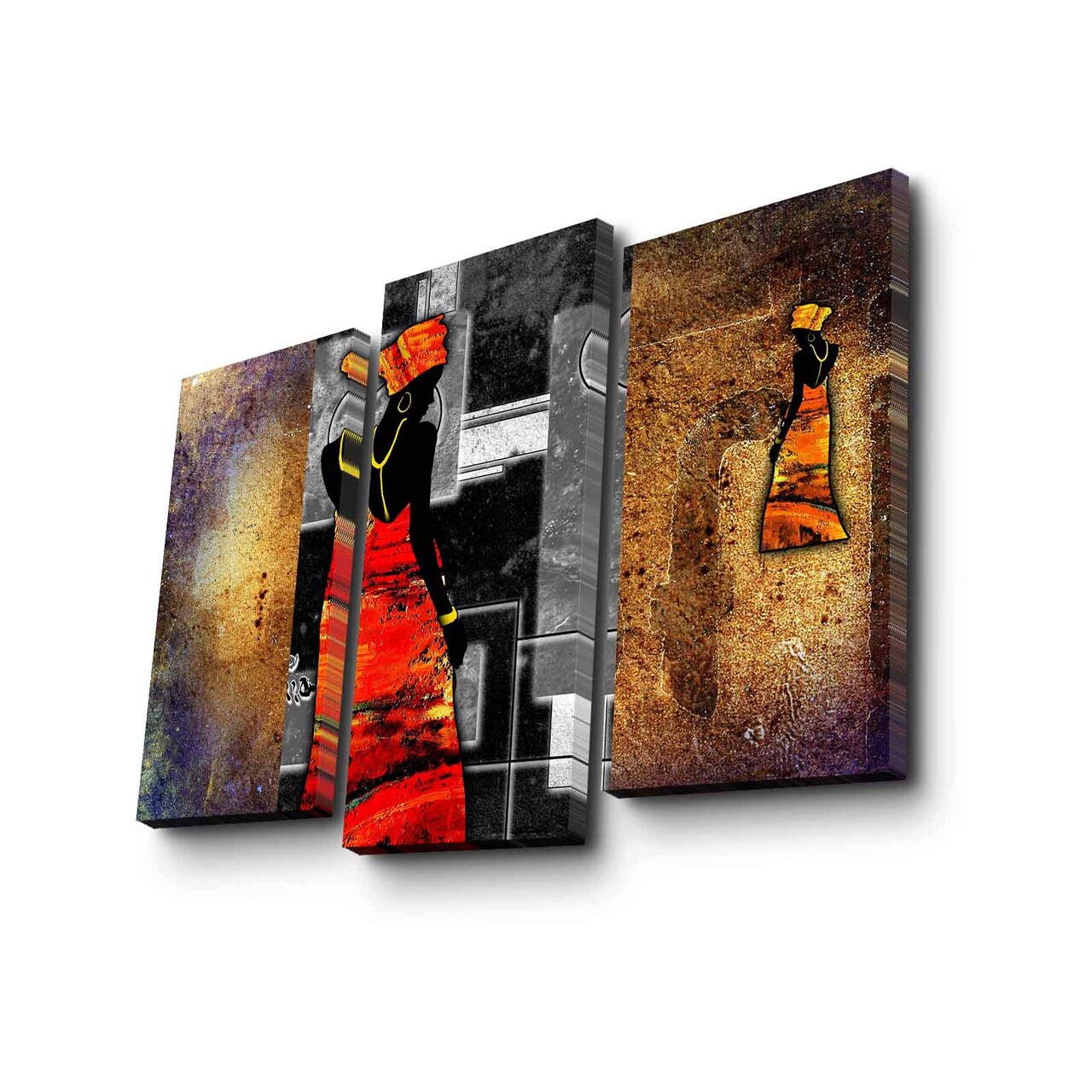 Tablou decorativ, 3PATK-103, 100% SUEDE CANVAS / Size: 20 x 39 cm (2 Pieces) / 20 x 45 cm (1 Piece) / Total Size: 66 x 45 cm / Frame: 100% Wooden (Thickness: 3 cm), Multicolor