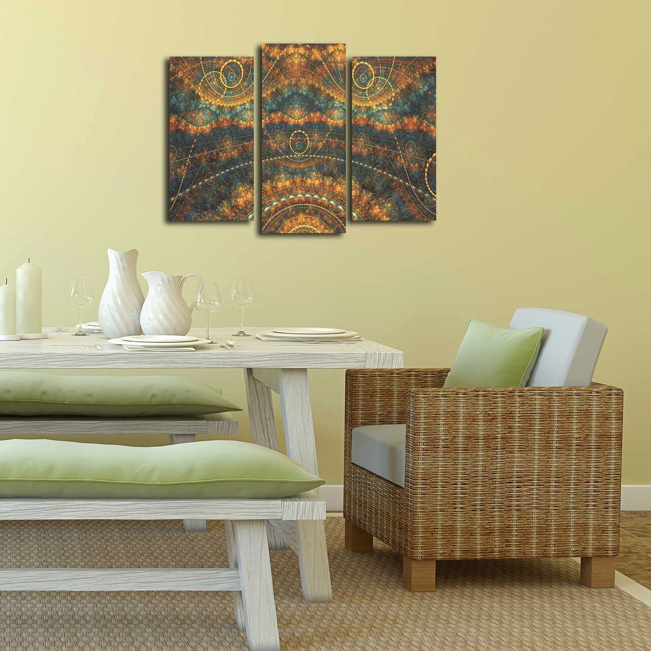 Tablou decorativ, 3PATK-110, 100% SUEDE CANVAS / Size: 20 x 39 cm (2 Pieces) / 20 x 45 cm (1 Piece) / Total Size: 66 x 45 cm / Frame: 100% Wooden (Thickness: 3 cm), Multicolor