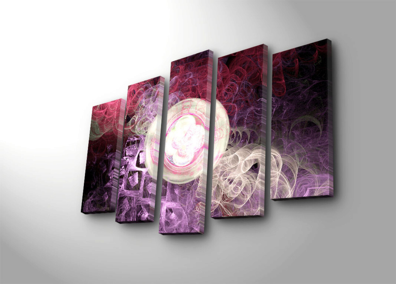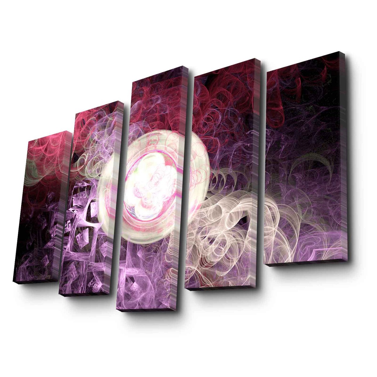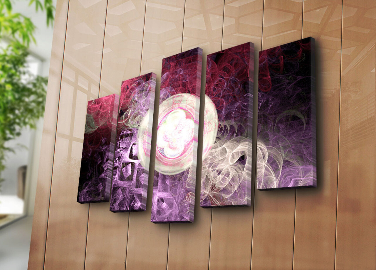 Tablou decorativ, 5PATK-203, 100% SUEDE CANVAS / Size: 19 x 70 cm (1 Piece) / 19 x 60 cm (2 Pieces) / 19 x 50 cm (2 Pieces) / Total Size: 105 x 70 cm / Frame: 100% Wooden (Thickness: 3 cm), Multicolor